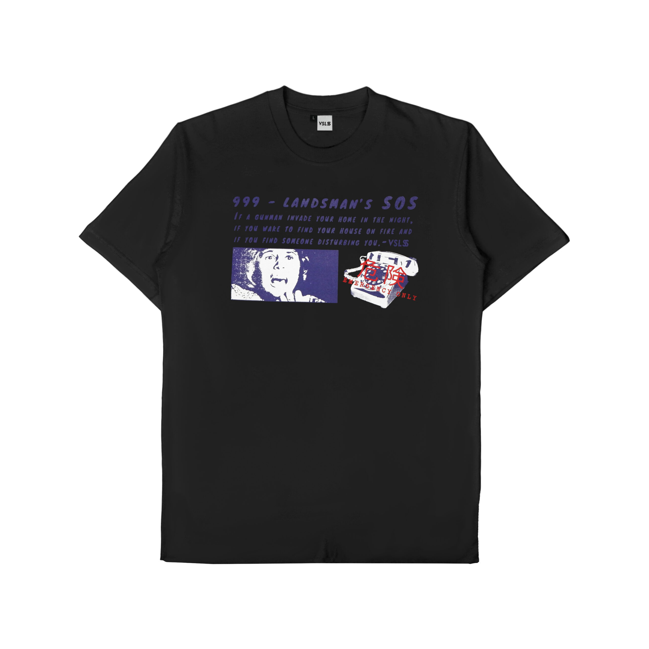 Kaos Lengan Pendek VSLSS menggunakan bahan katun kombed 24s dan sablon plastisol pada bagian depan