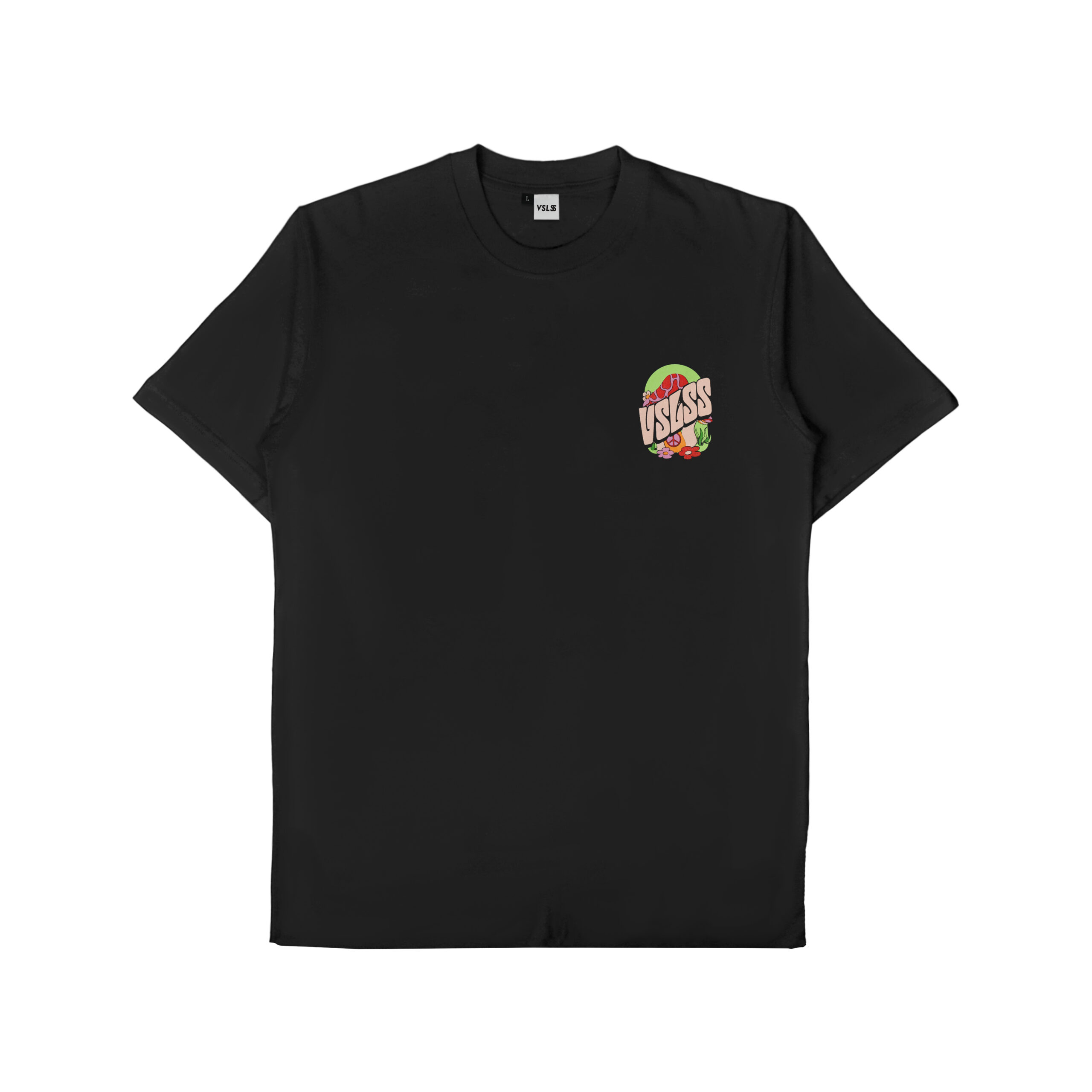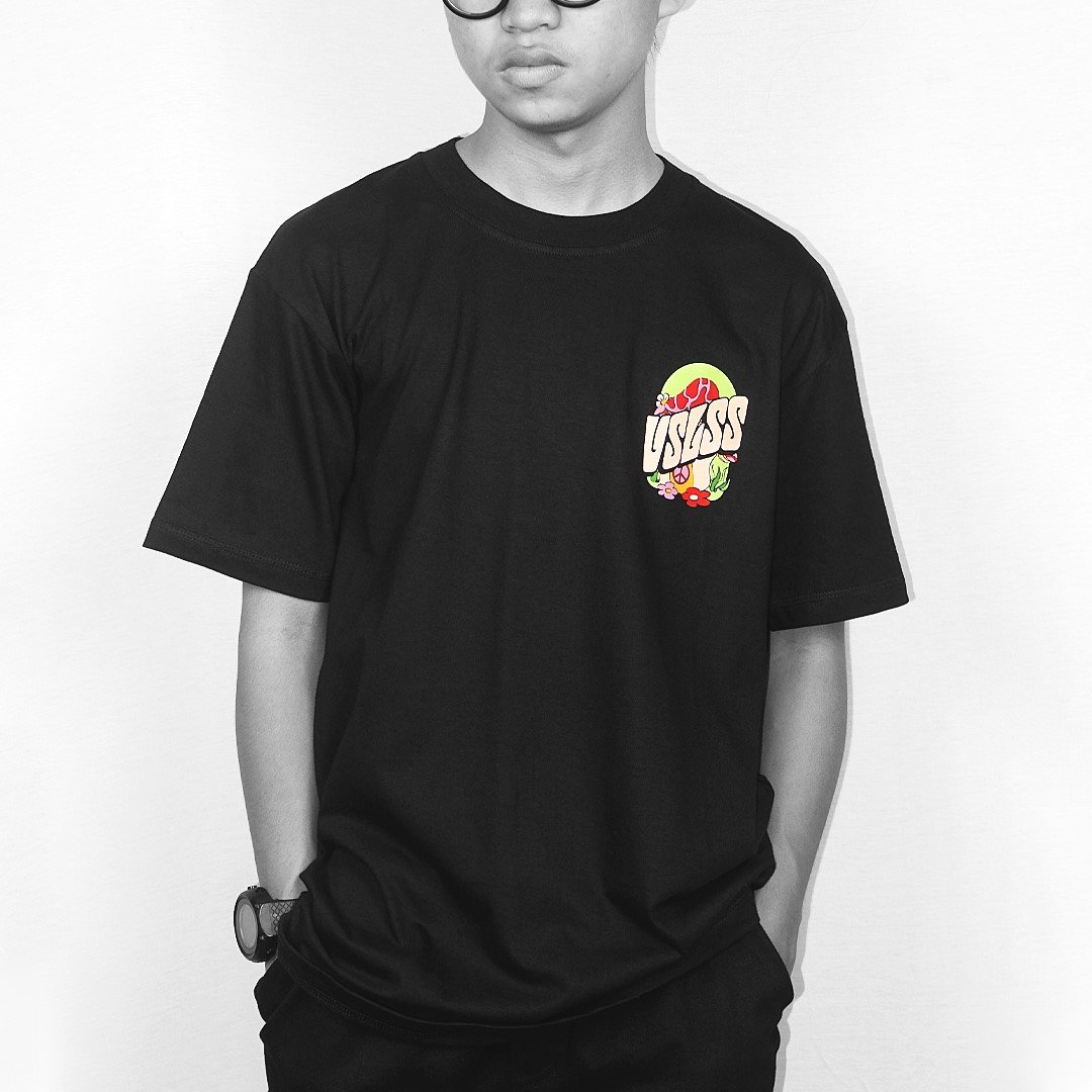 Kaos Lengan Pendek VSLSS menggunakan bahan katun kombed 24s dan sablon plastisol pada bagian depan dan belakang