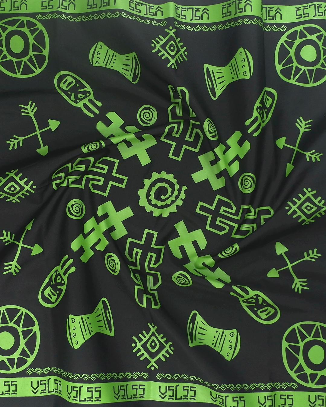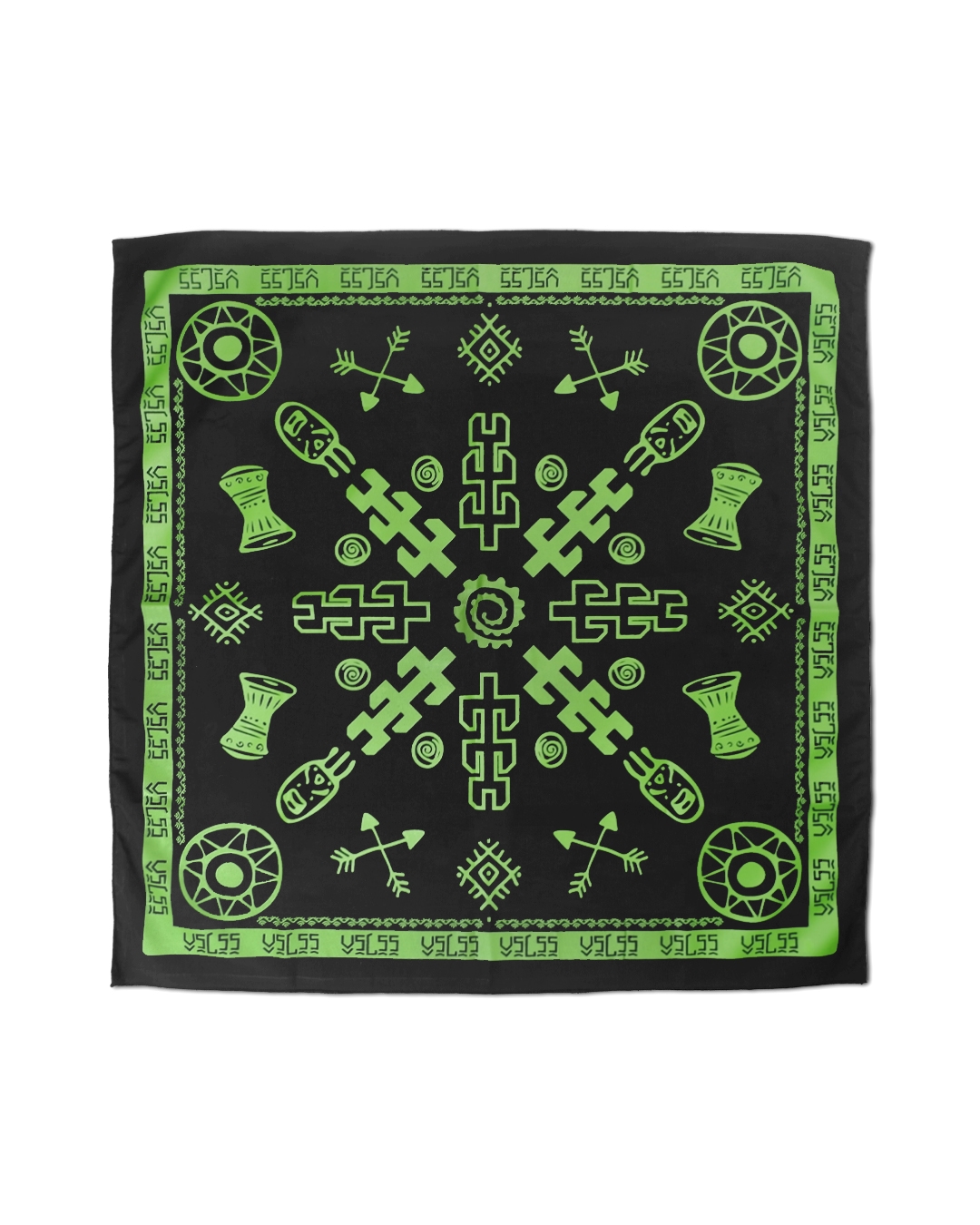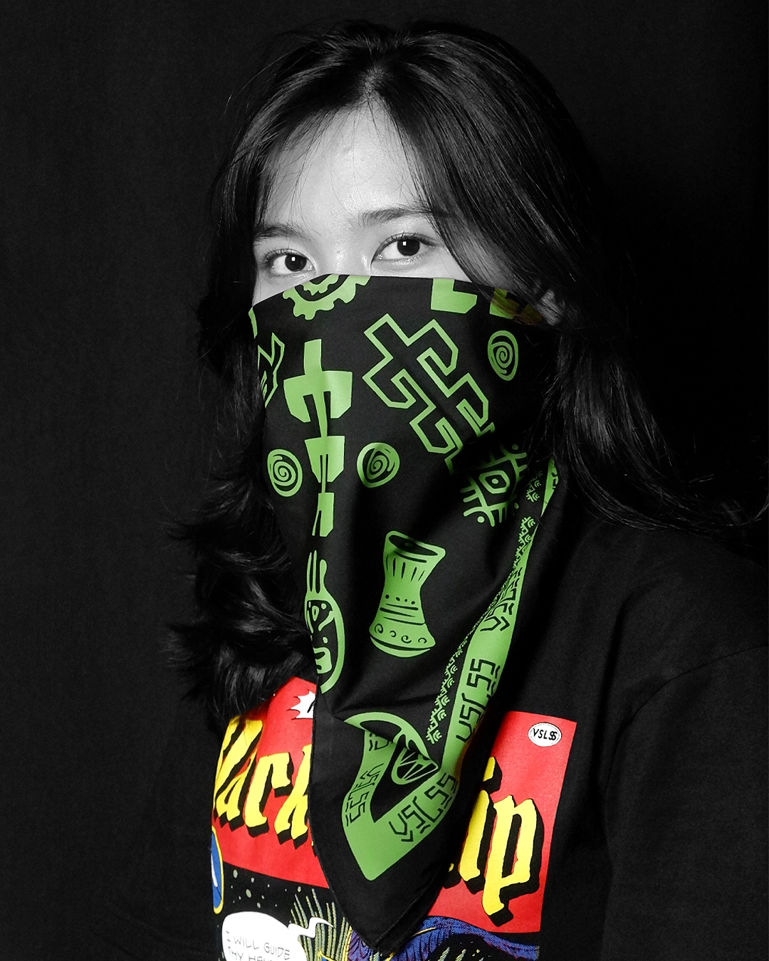 VSLSS bandana/scarf using sogo material measuring 55 cm x 55 cm and screen printing on the front