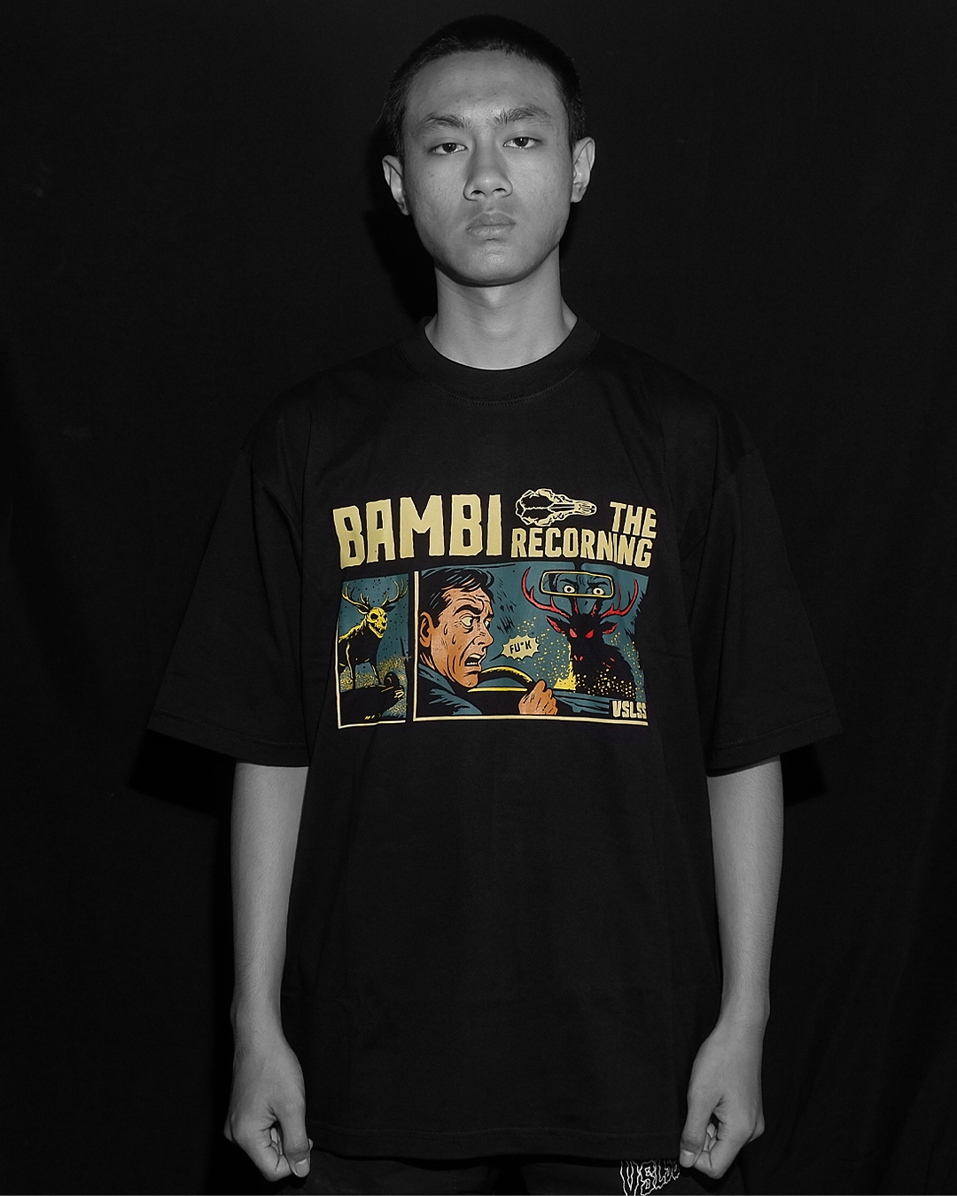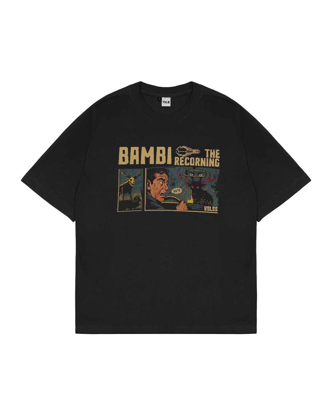 Kaos Lengan Pendek VSLSS menggunakan bahan katun kombed 16s dan sablon plastisol pada bagian depan