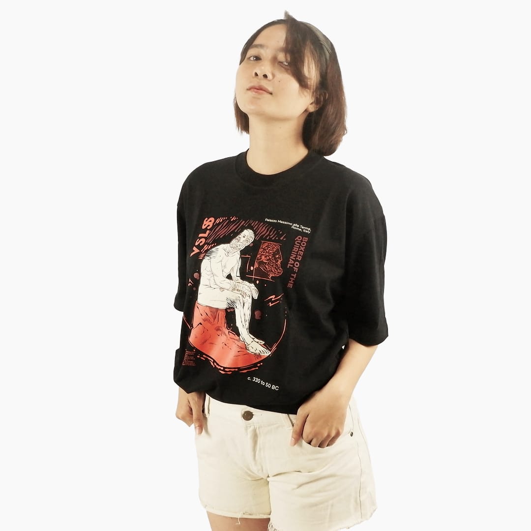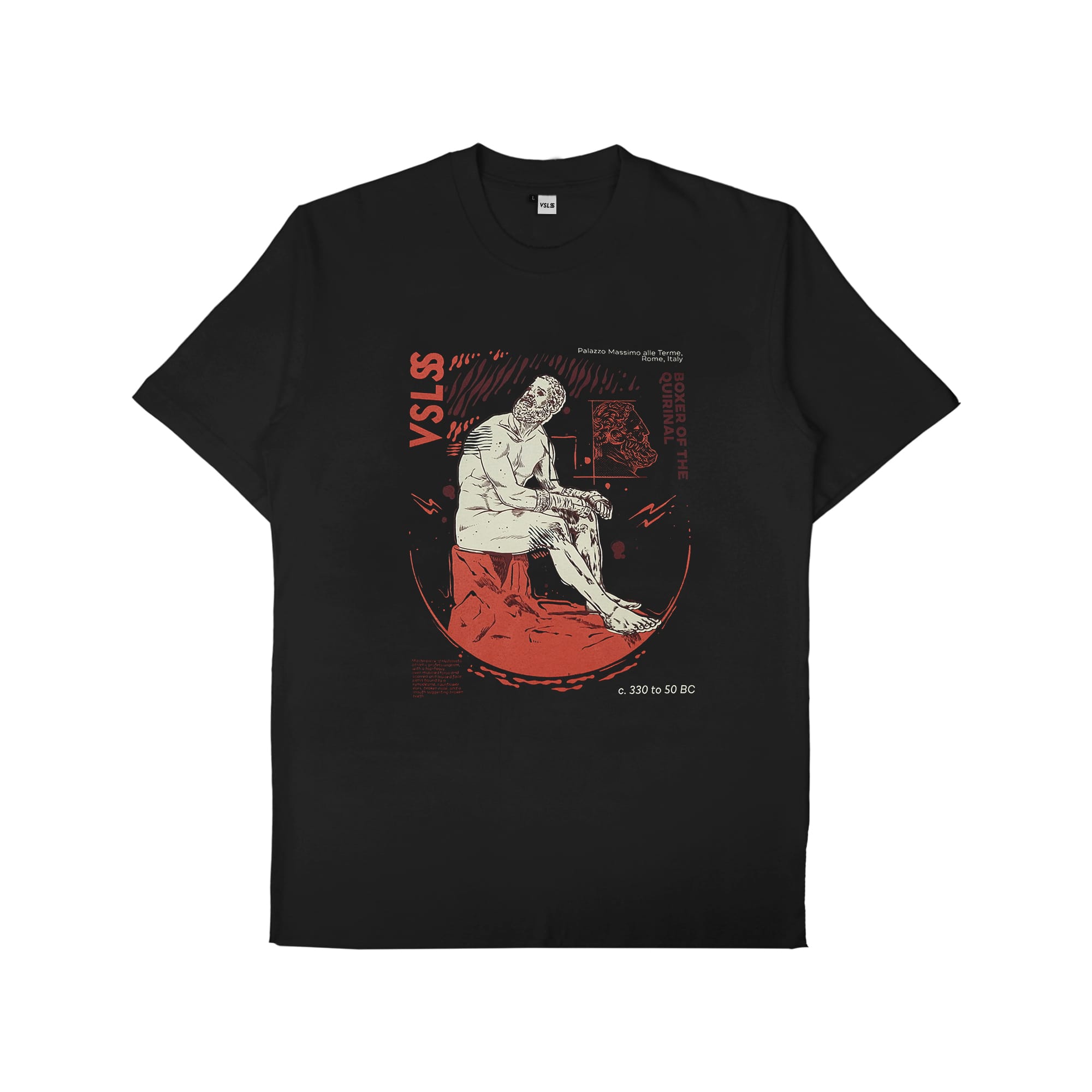 Kaos Lengan Pendek VSLSS menggunakan bahan katun kombed 24s dan sablon plastisol pada bagian depan