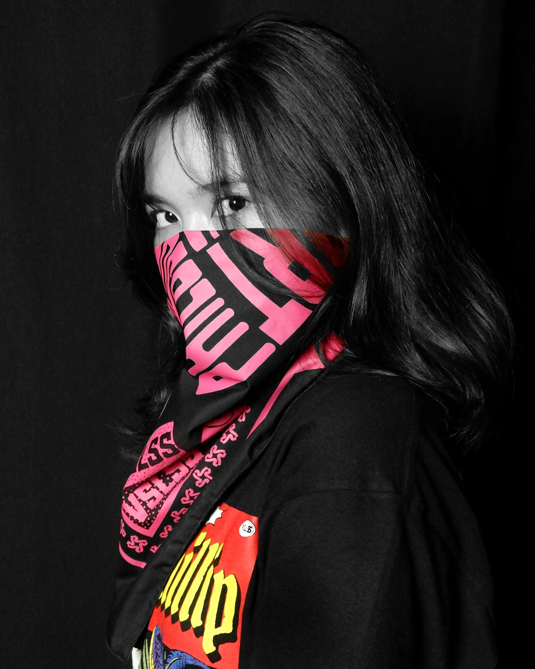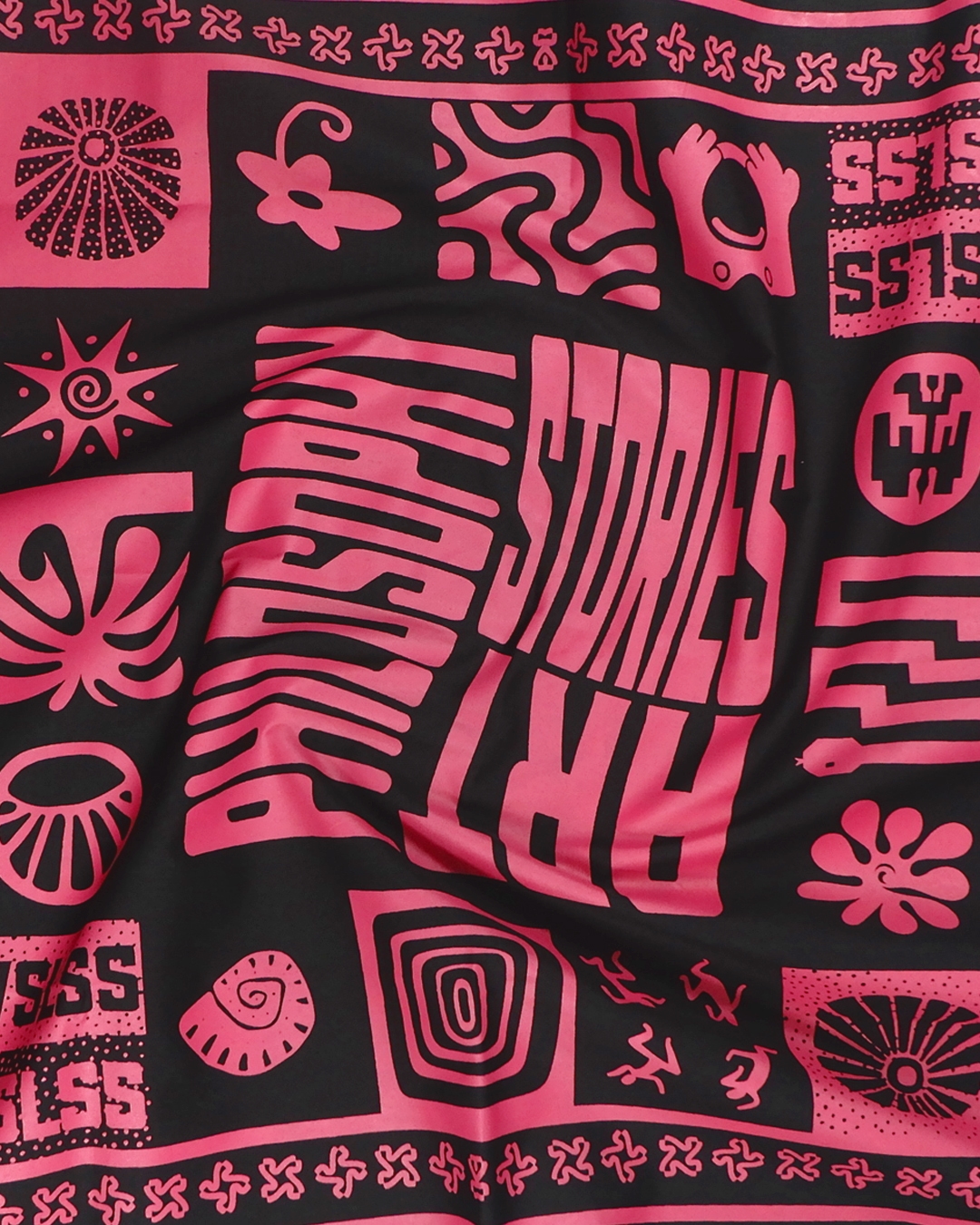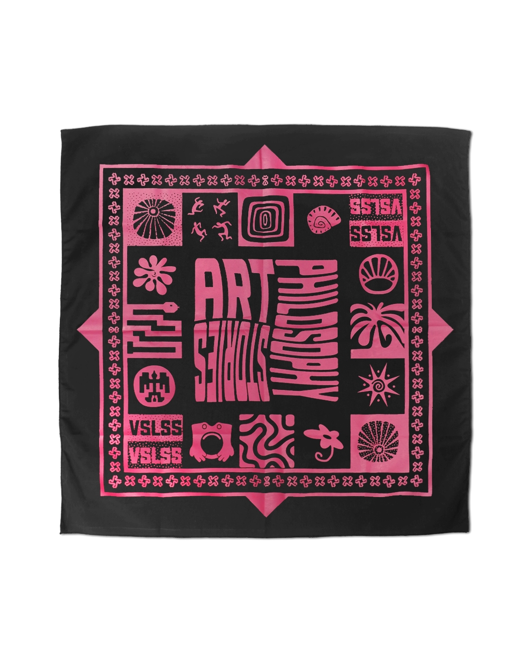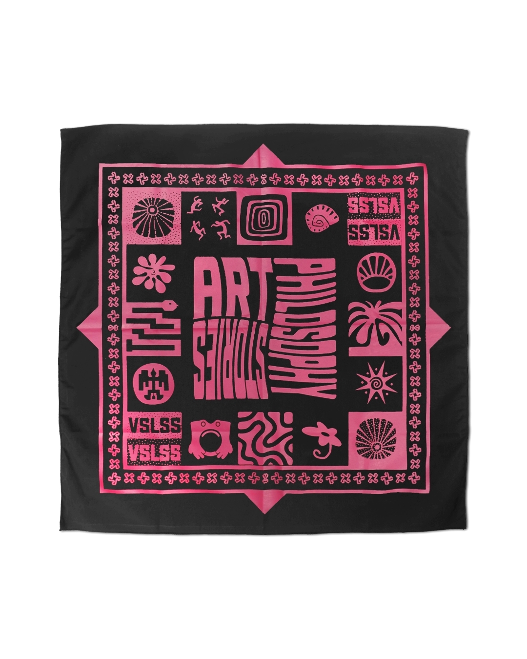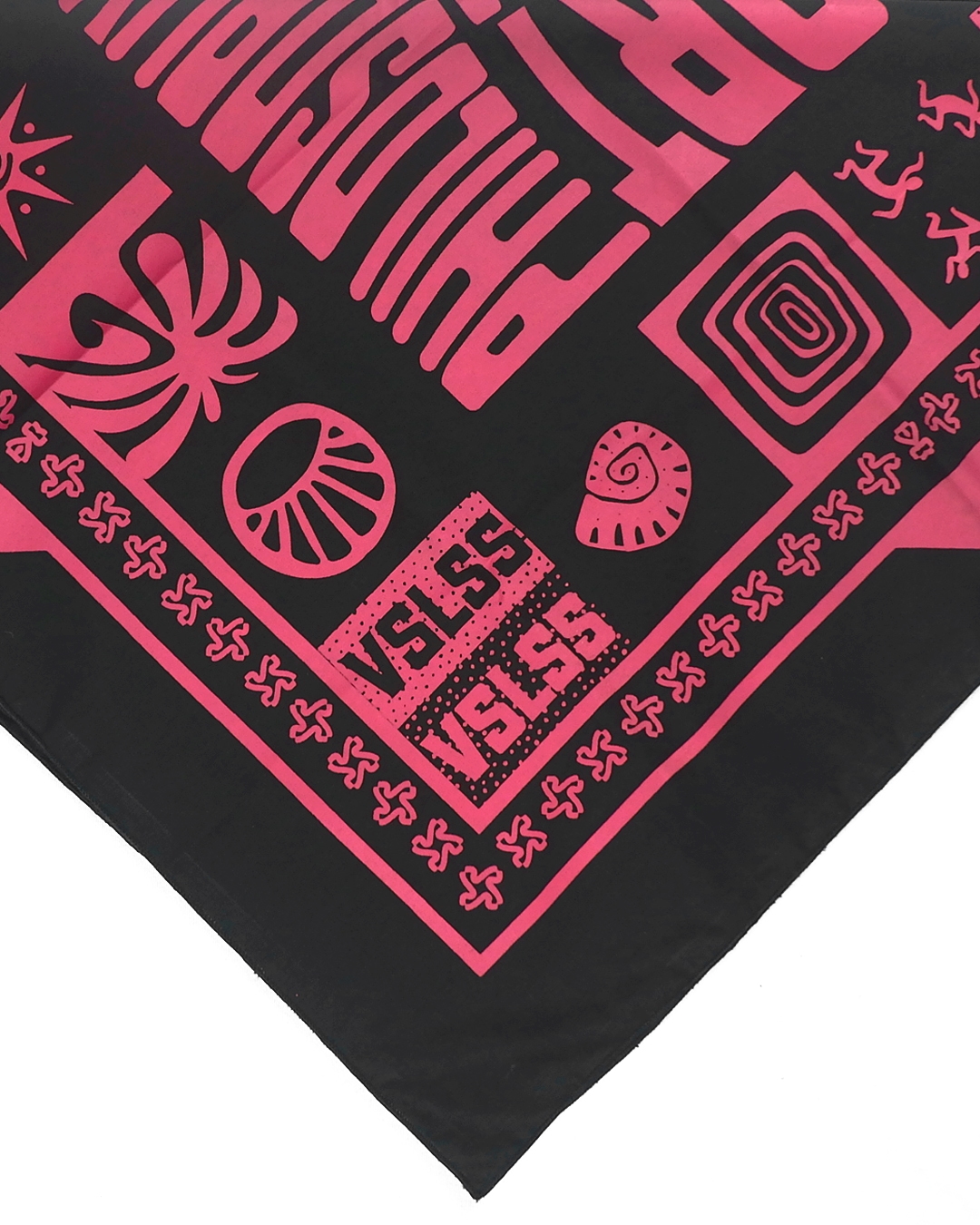VSLSS bandana/scarf using sogo material measuring 55 cm x 55 cm and screen printing on the front