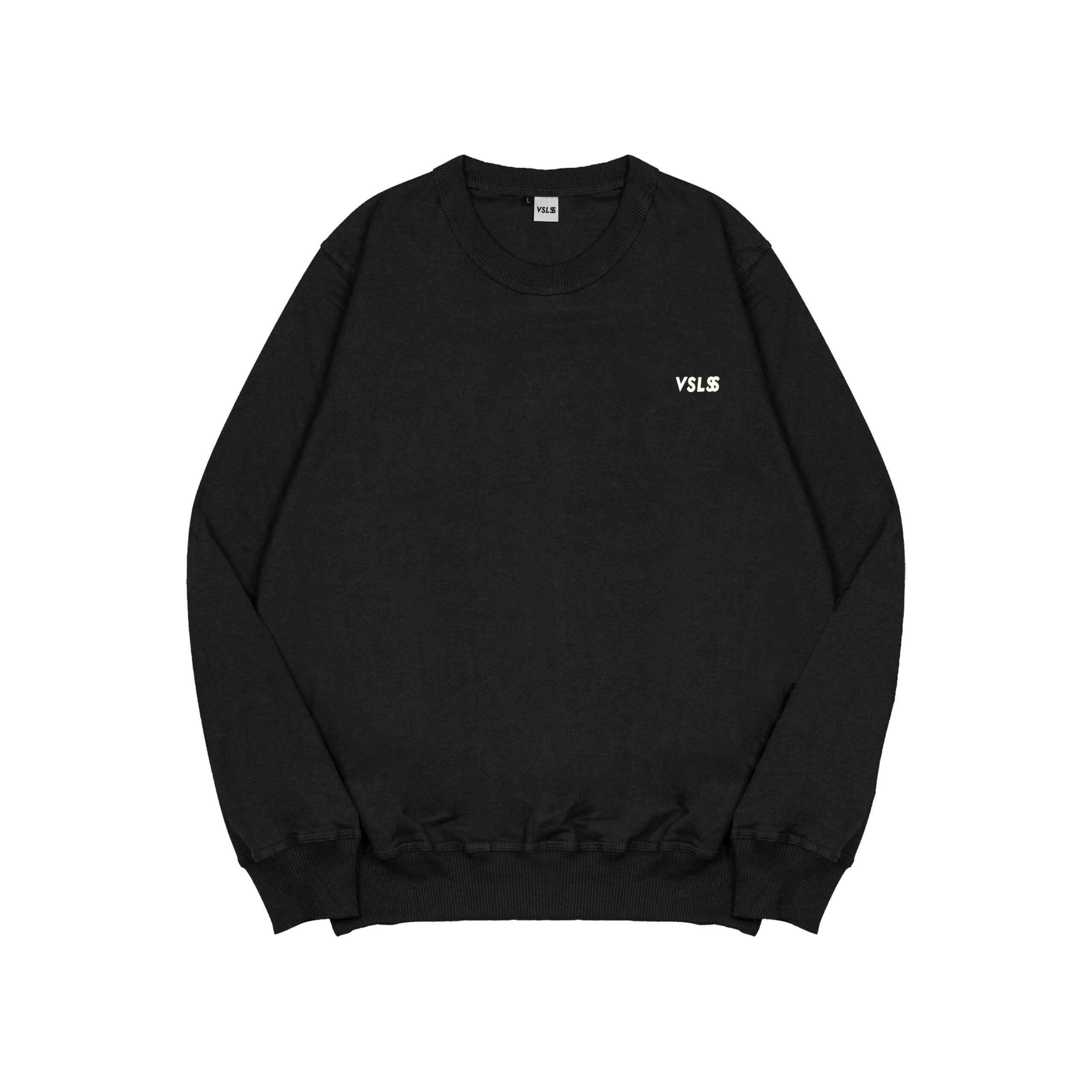 VSLSS crewneck using fleece cotton and High Density screen printing on the front