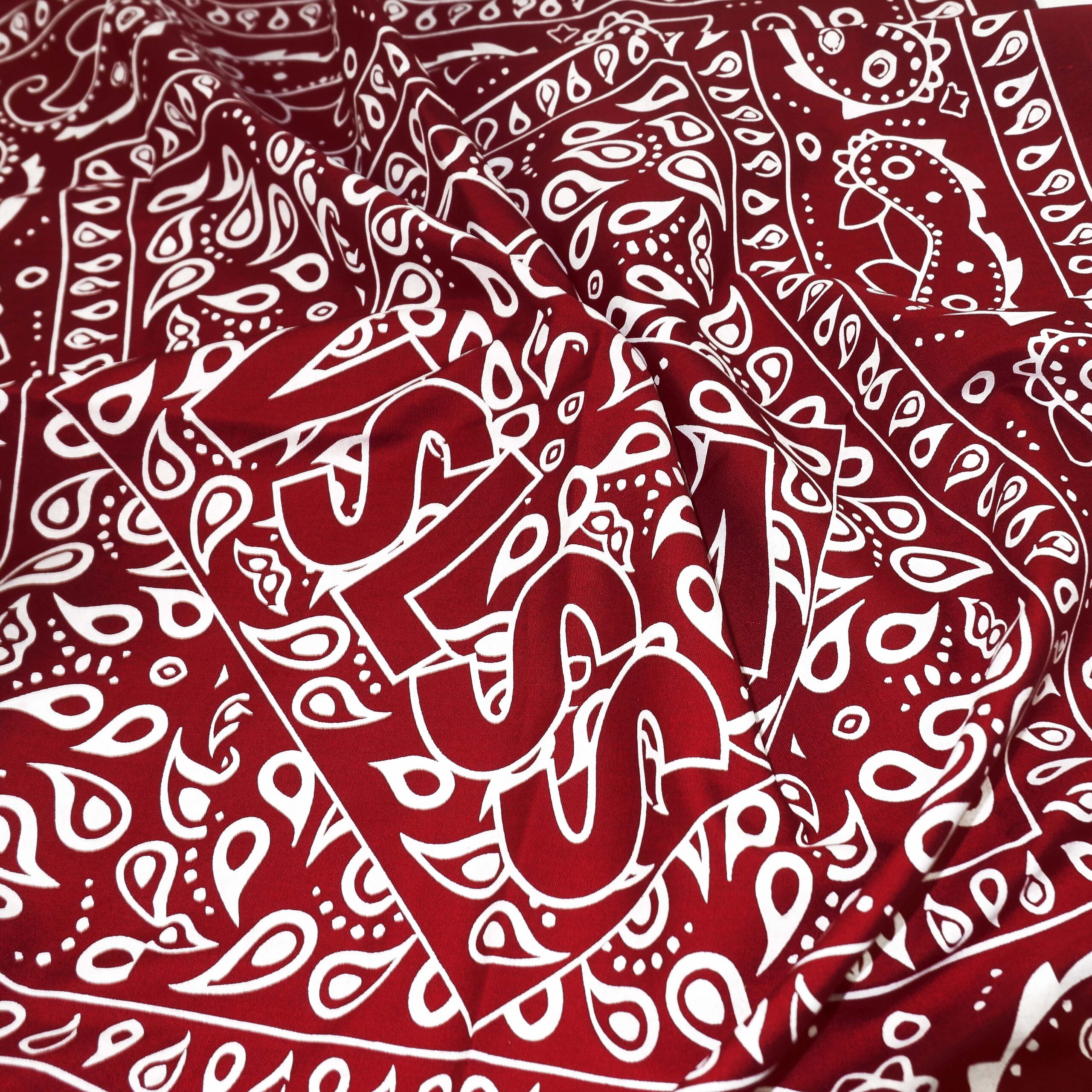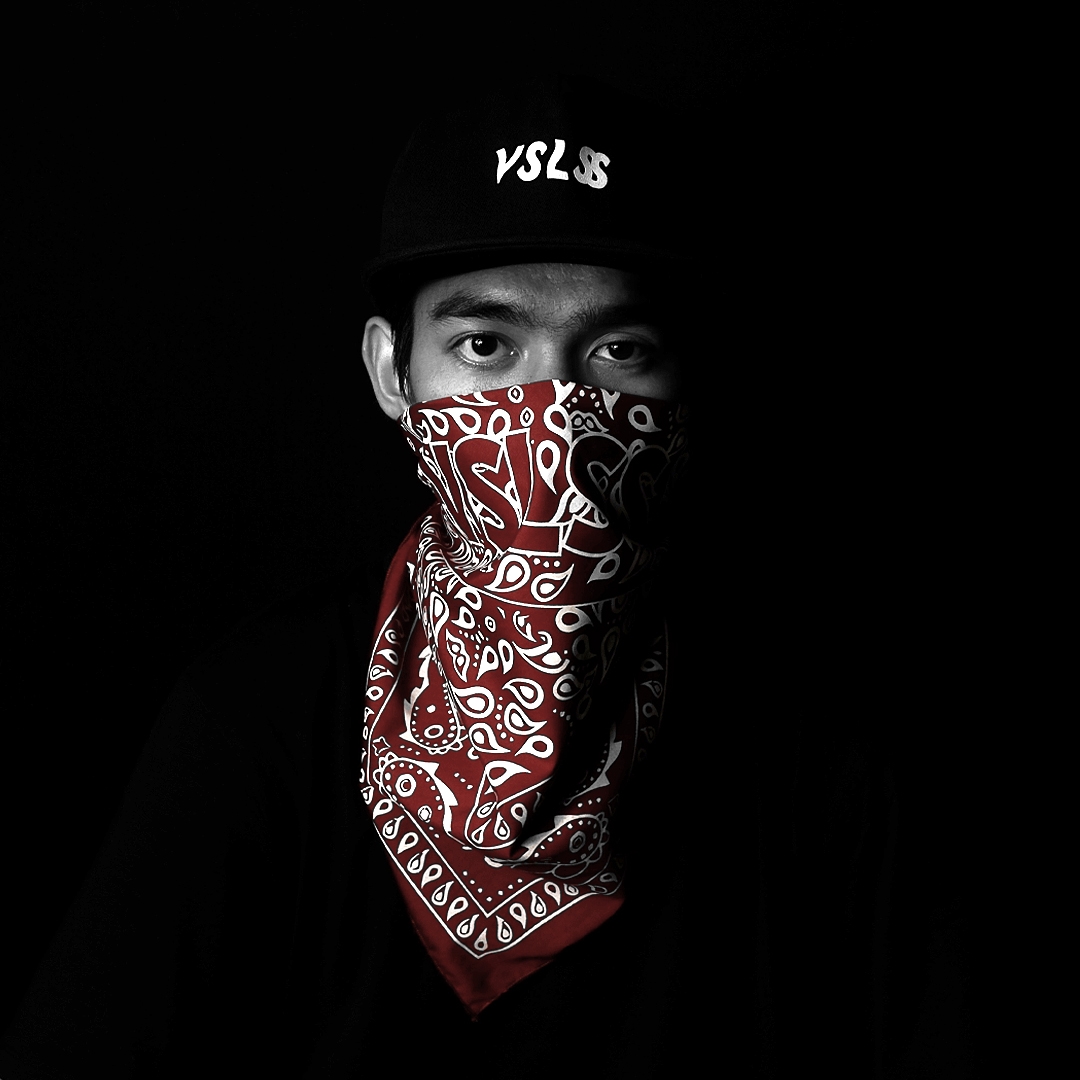 VSLSS bandana/scarf using sogo material measuring 55 cm x 55 cm and screen printing on the front