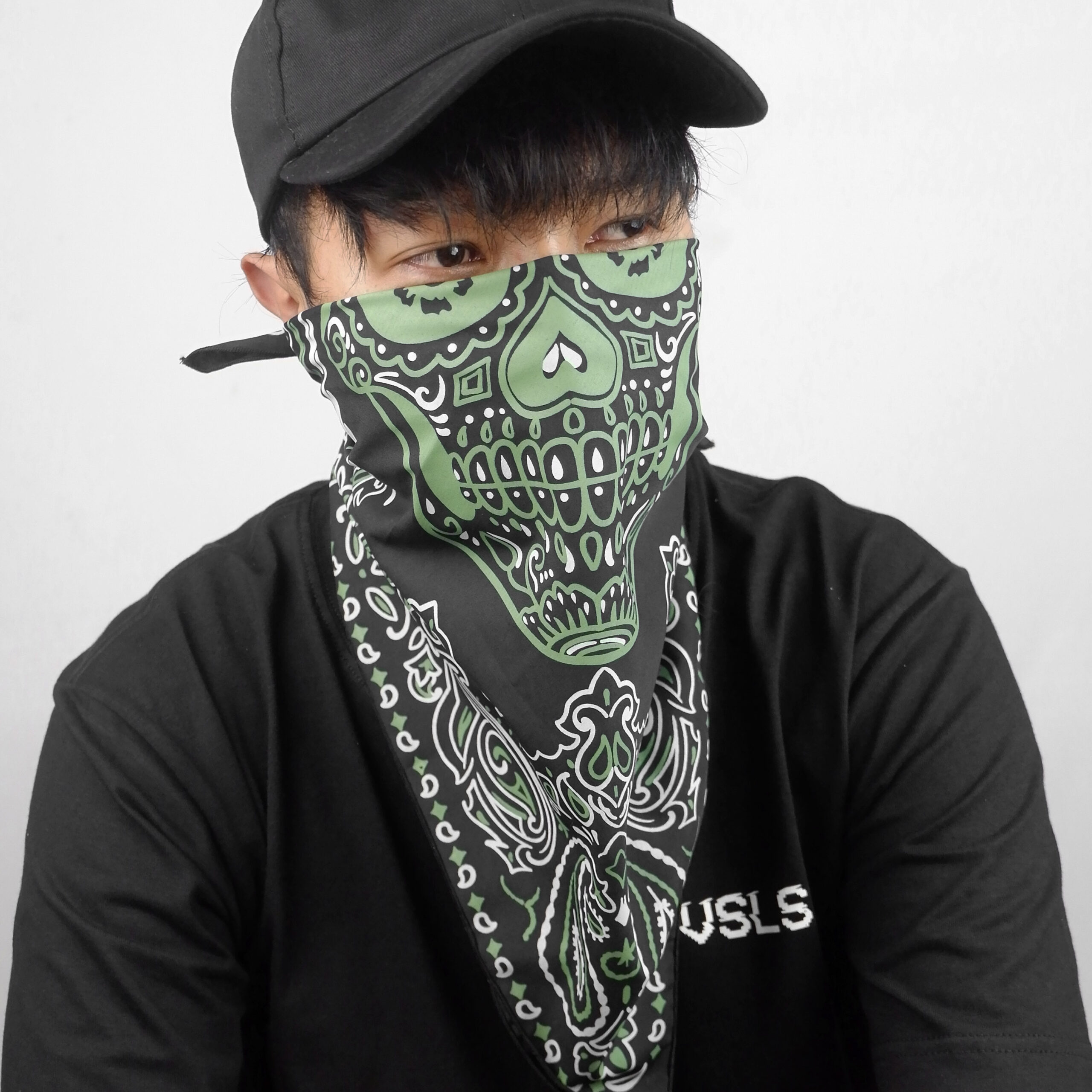 VSLSS bandana/scarf using sogo material measuring 55 cm x 55 cm and screen printing on the front