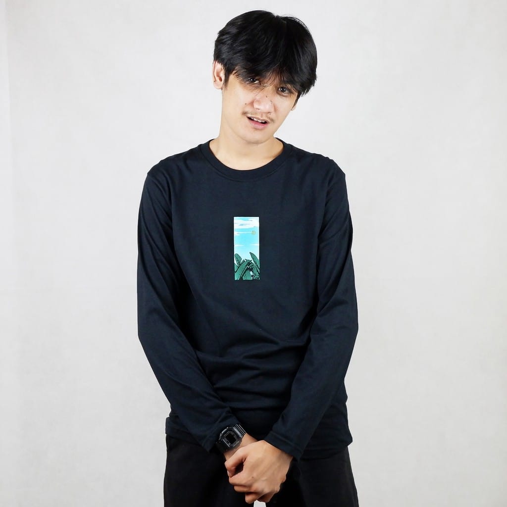 Long sleeve T-shirt with ink screenprint at front.