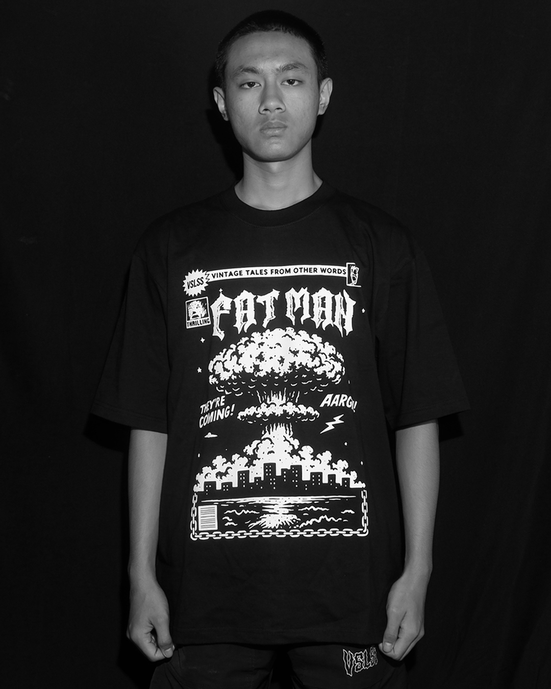 Kaos Lengan Pendek VSLSS menggunakan bahan katun kombed 16s dan sablon plastisol pada bagian depan
