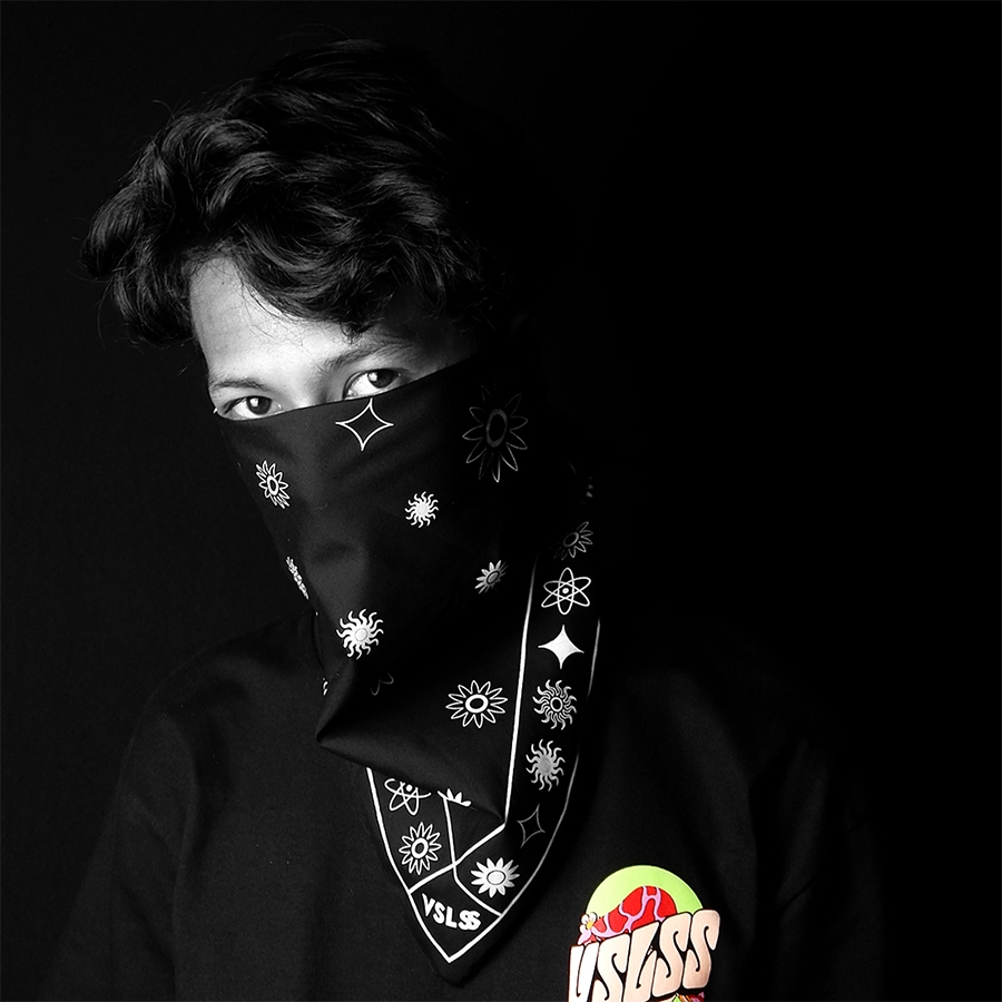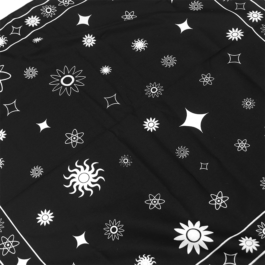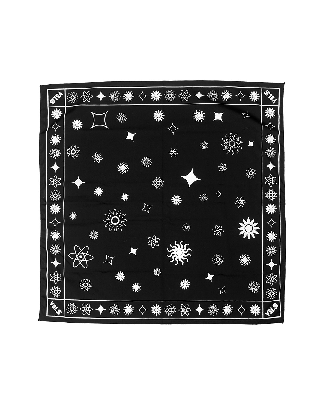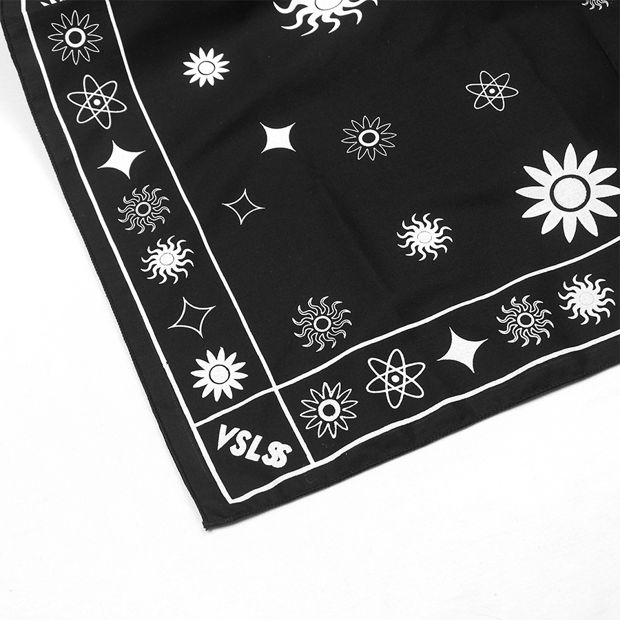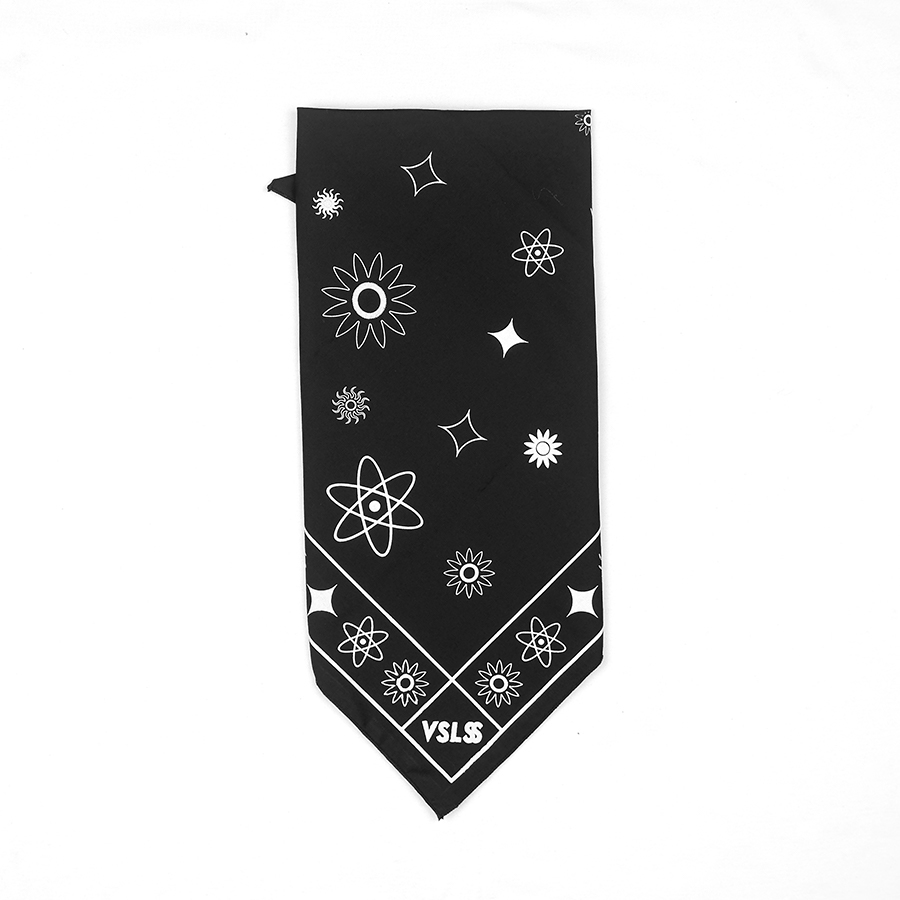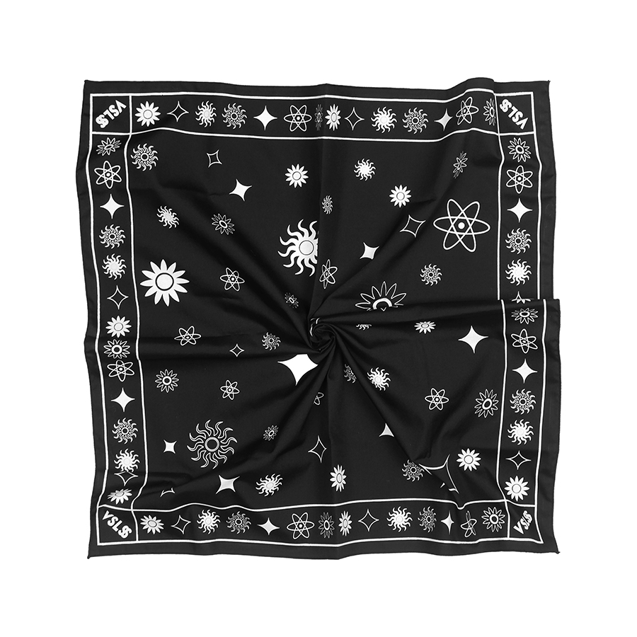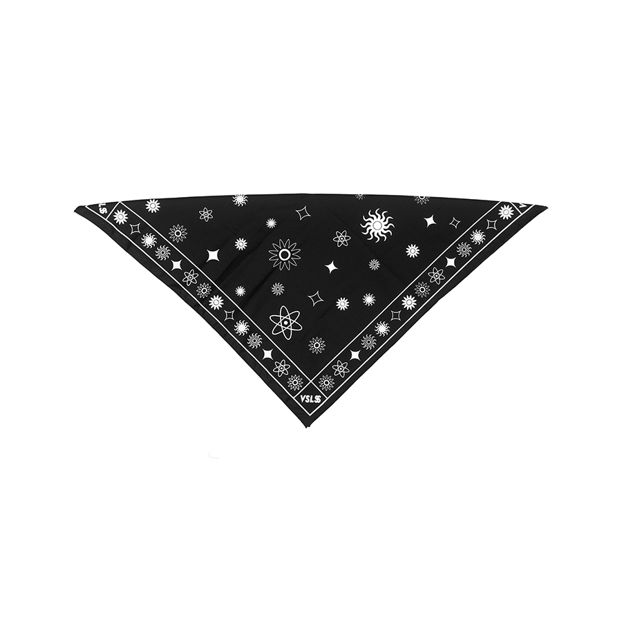 VSLSS bandana/scarf using sogo material measuring 55 cm x 55 cm and screen printing on the front