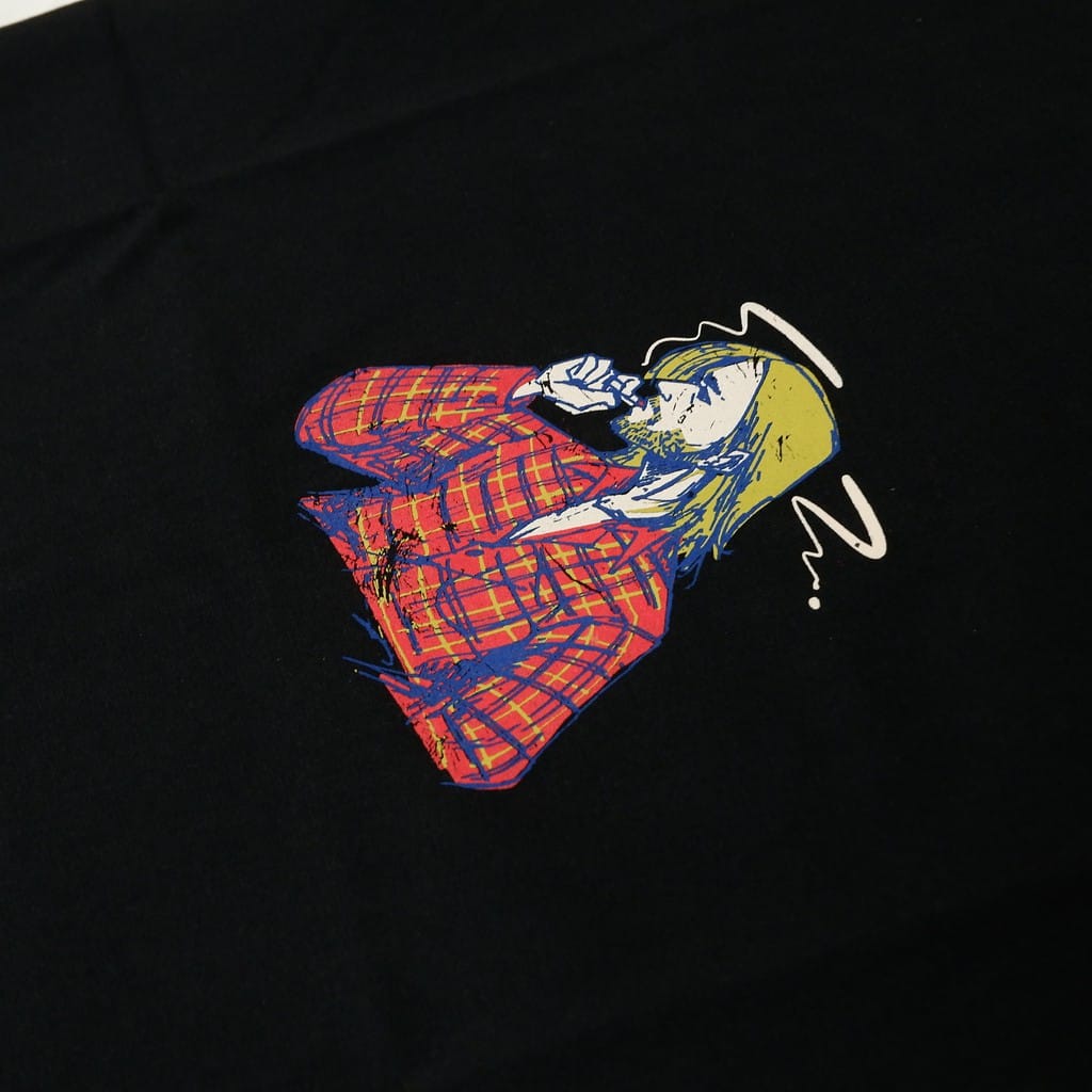 short sleeve T-shirt with ink screenprint at front.