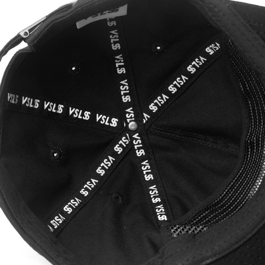 VSLSS black unstructured strap back cap with embroidery on front