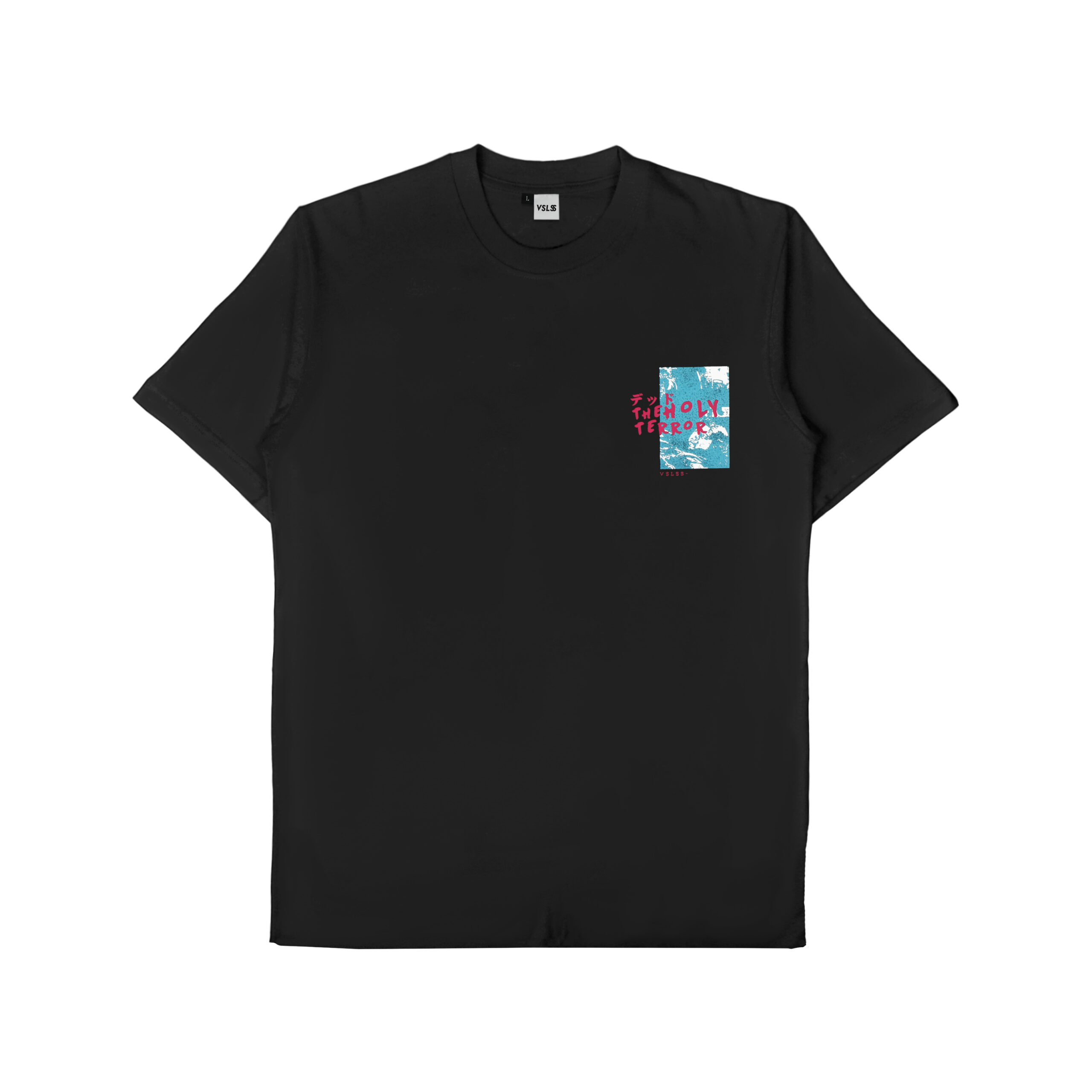 Kaos Lengan Pendek VSLSS menggunakan bahan katun kombed 24s dan sablon plastisol pada bagian depan