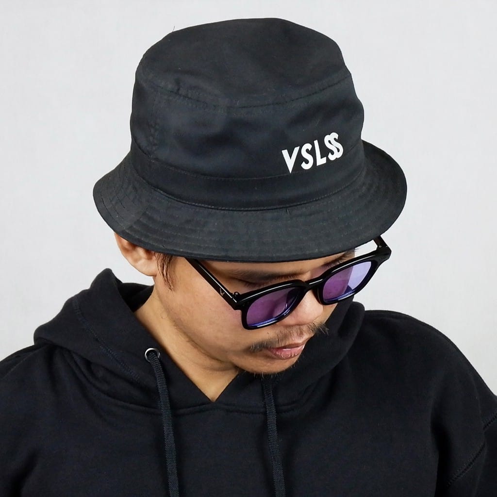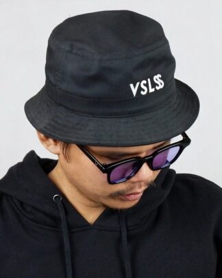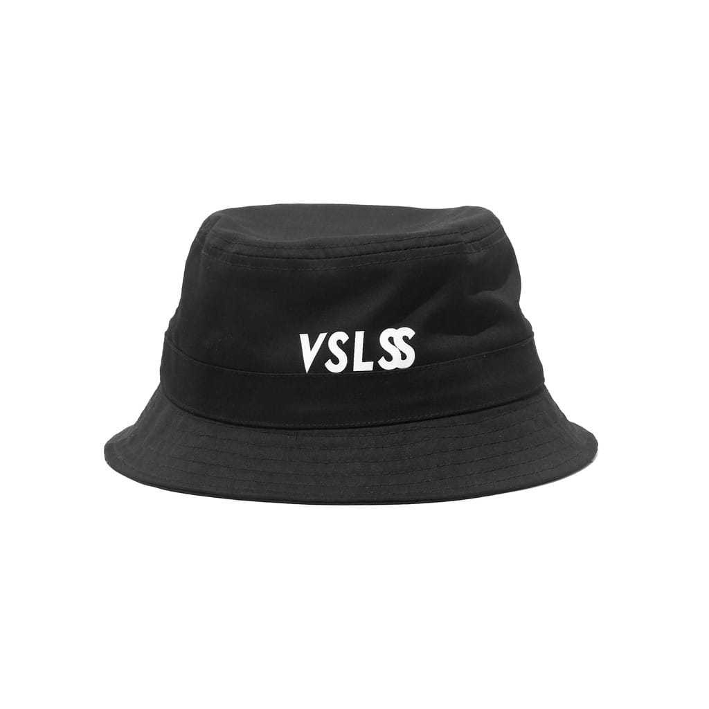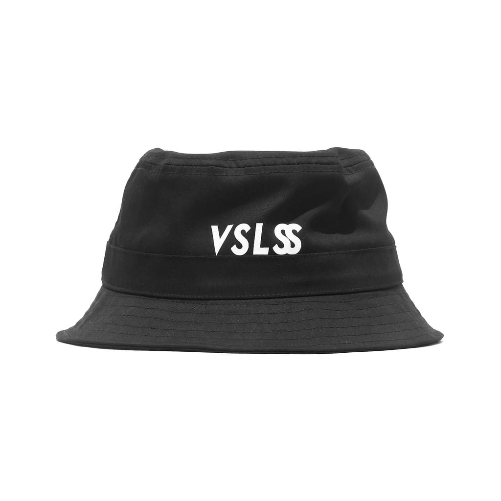 Black cotton bucket hat with ink screenprint at front