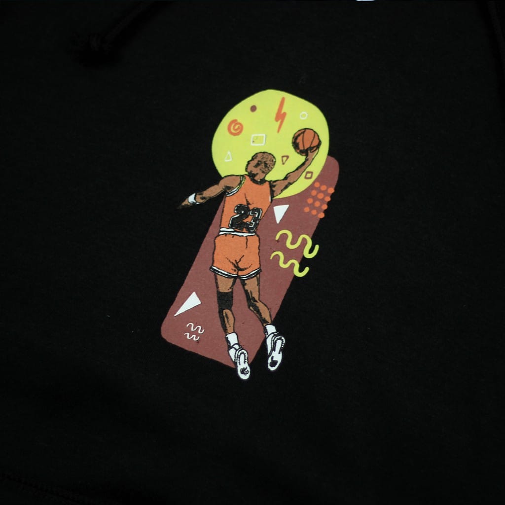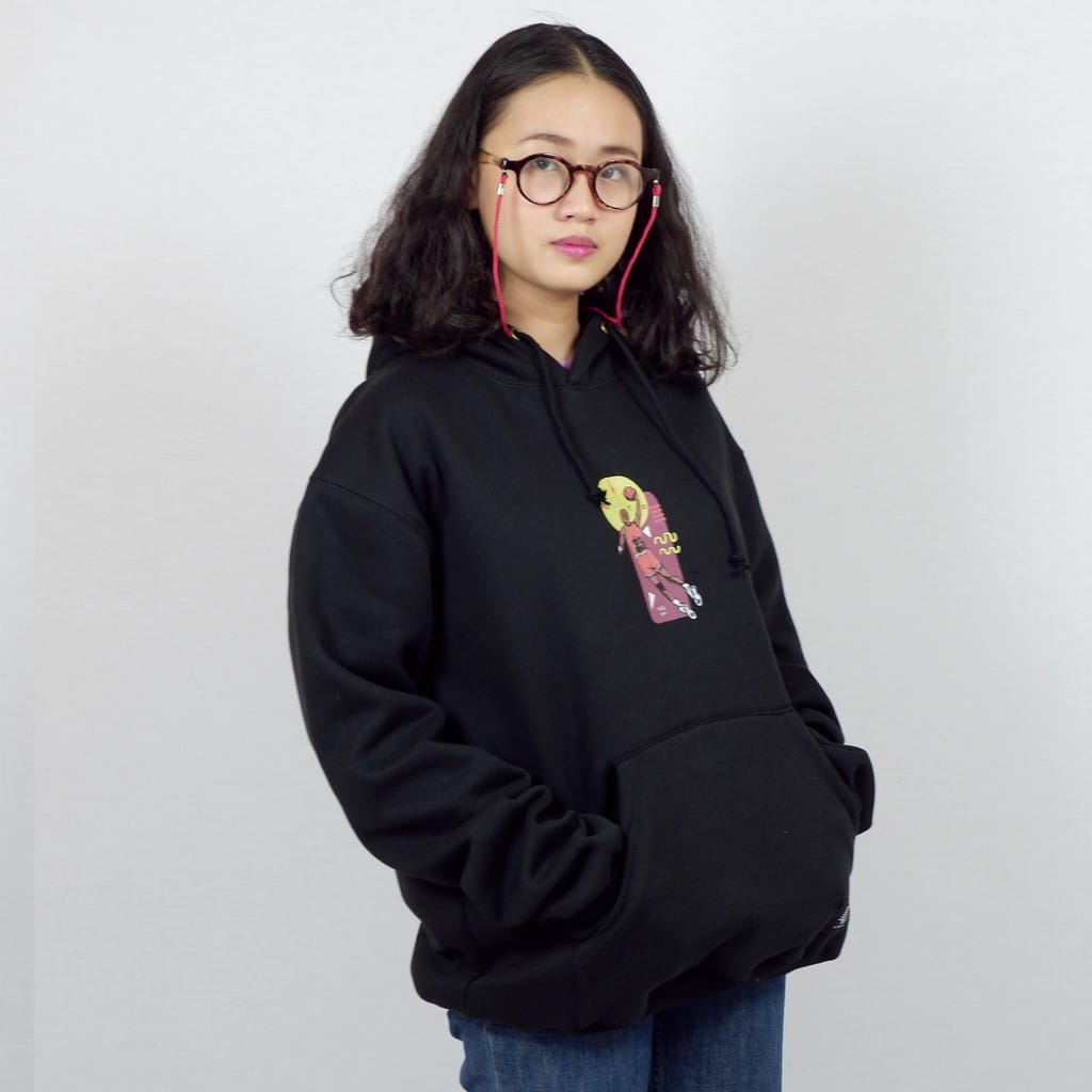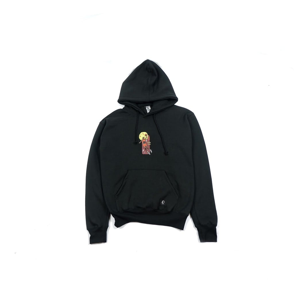 Pullover hoodie, with ink screen print at front.