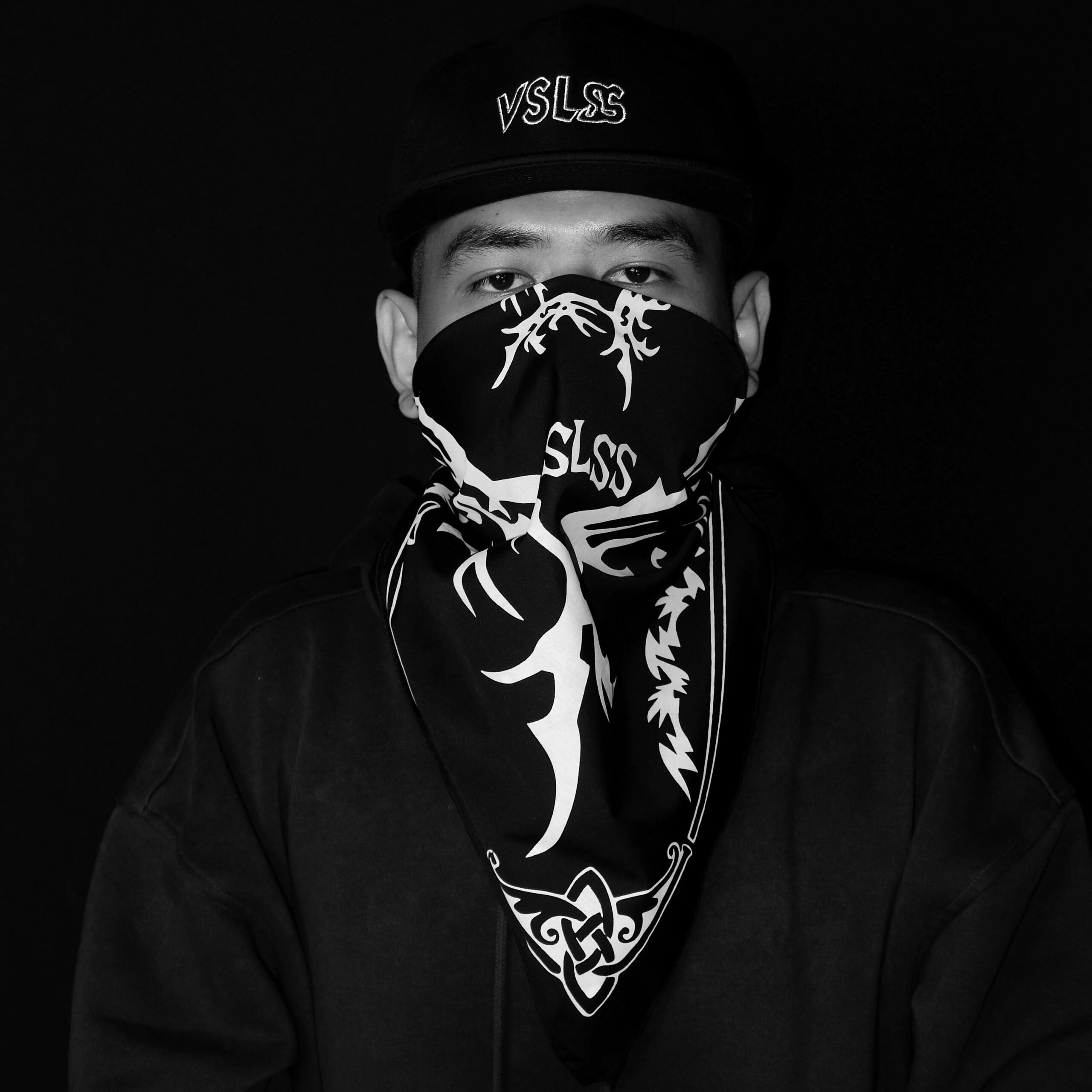 VSLSS bandana/scarf using sogo material measuring 55 cm x 55 cm and screen printing on the front