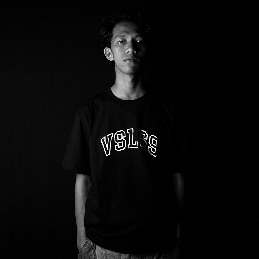Kaos Lengan Pendek VSLSS menggunakan bahan katun kombed 20s dan sablon plastisol pada bagian depan