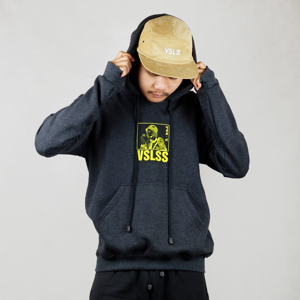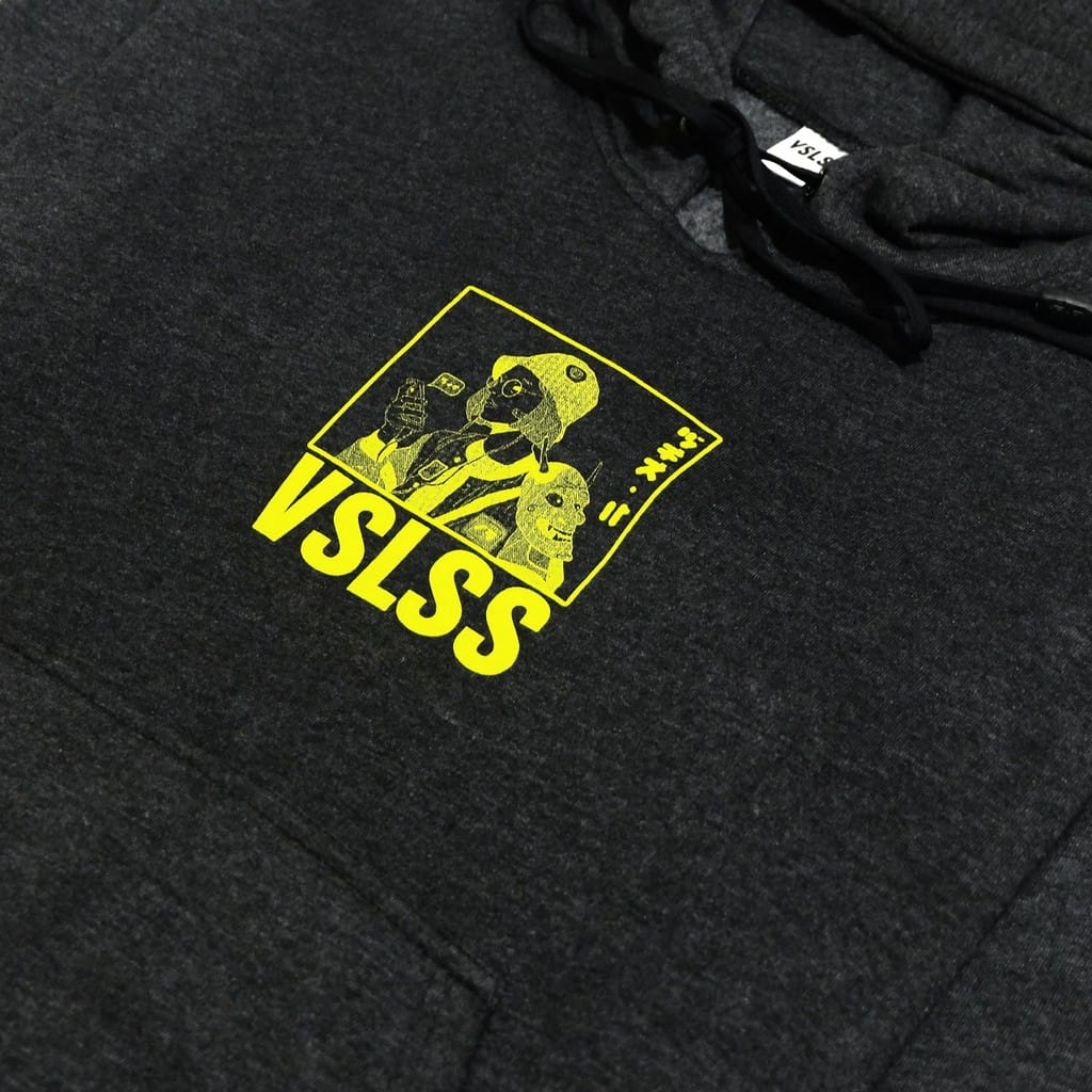 Pullover hoodie, with ink screen print at front.