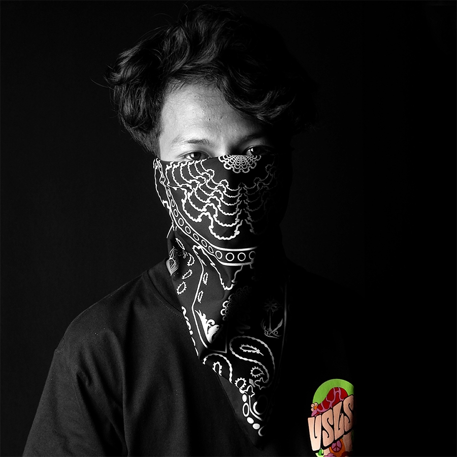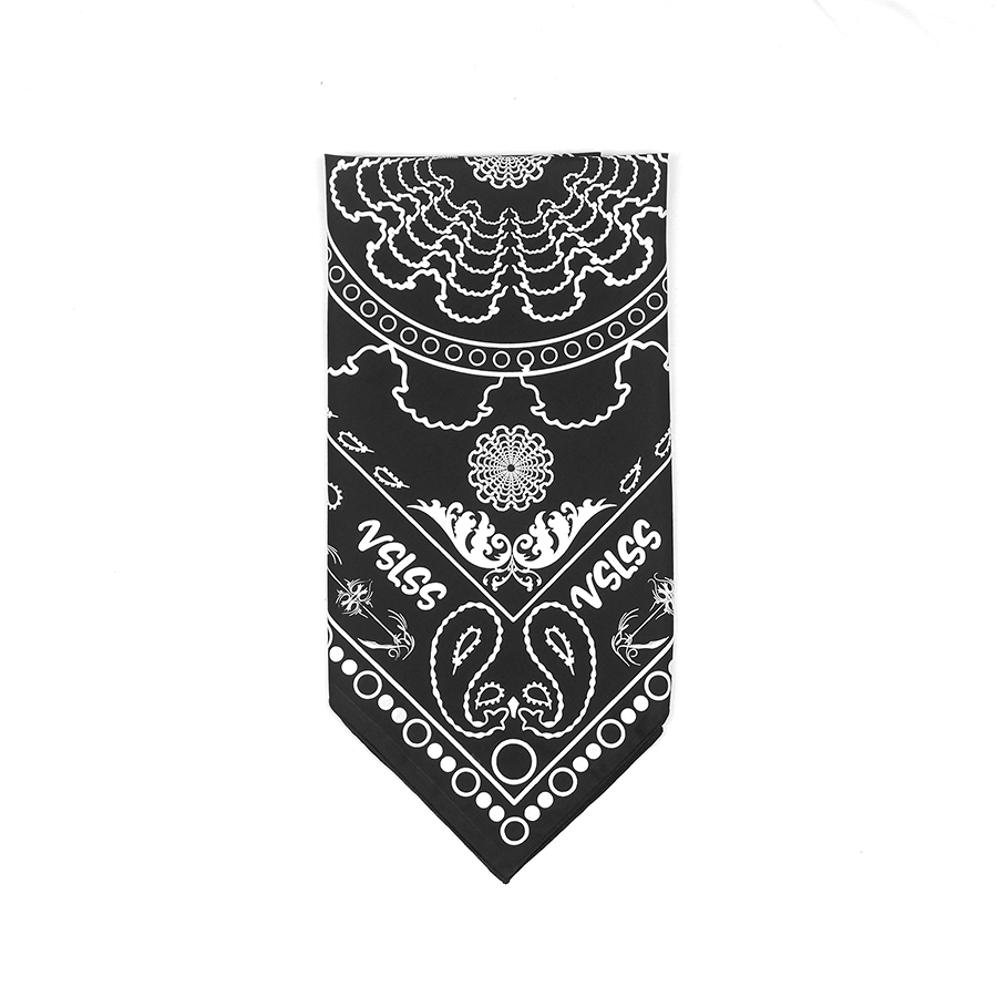VSLSS bandana/scarf using sogo material measuring 55 cm x 55 cm and screen printing on the front