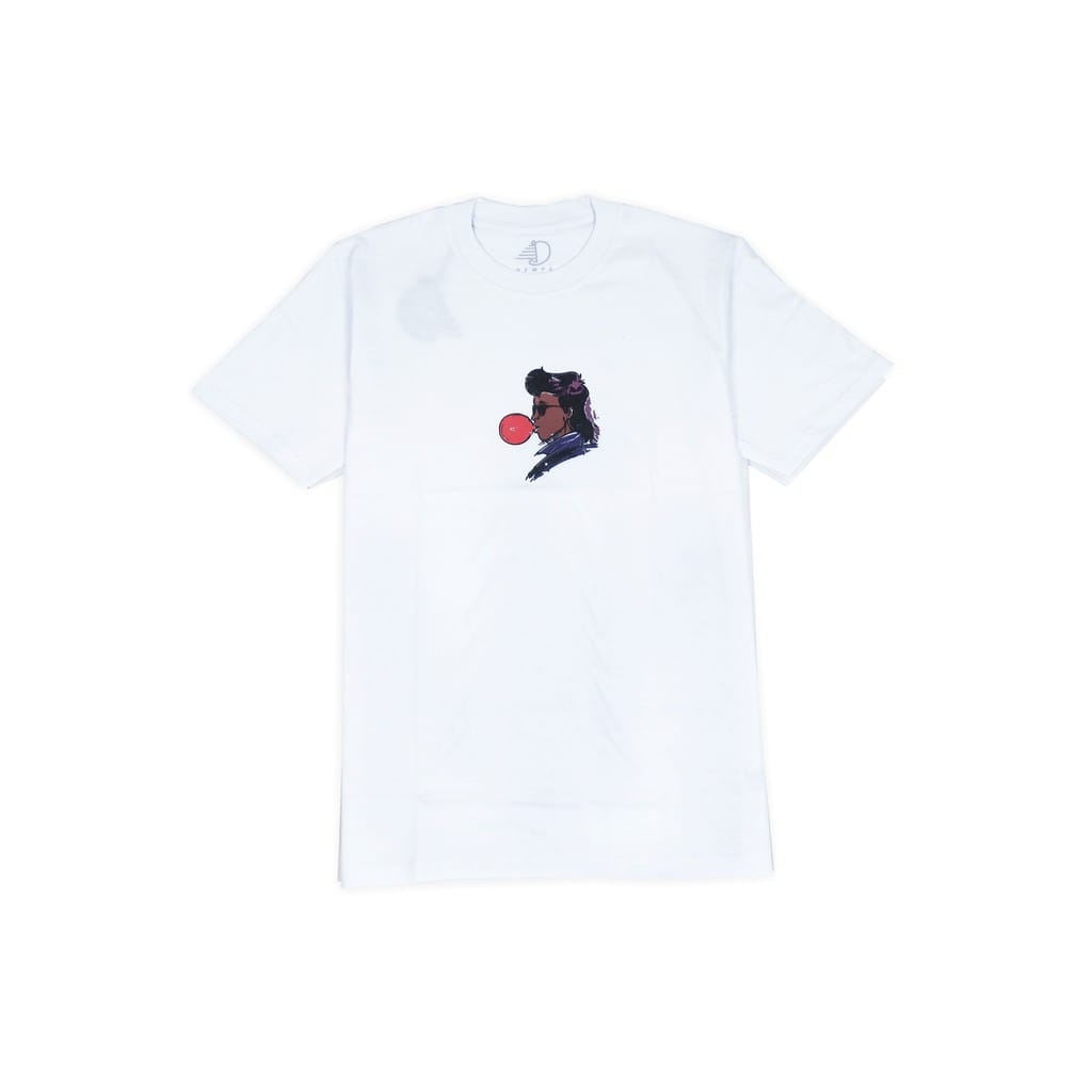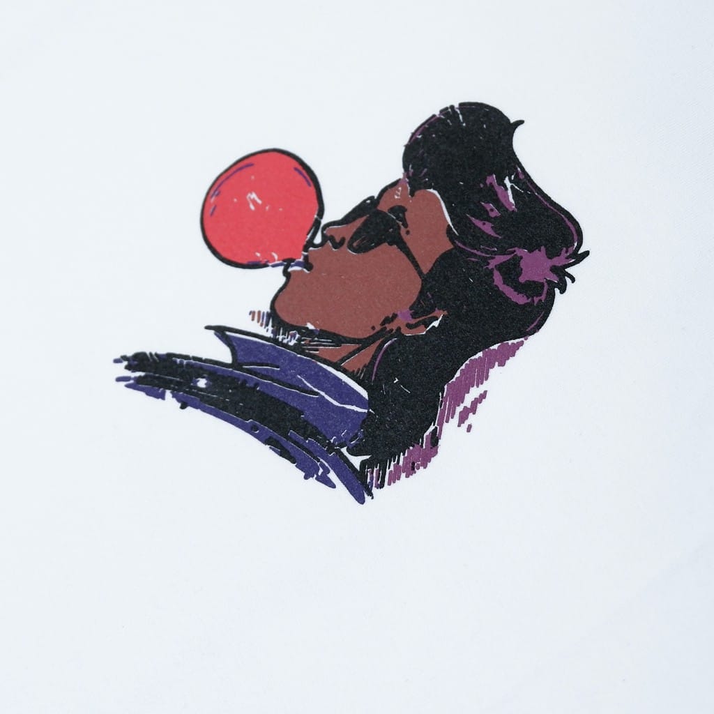 short sleeve T-shirt with ink screenprint at front.