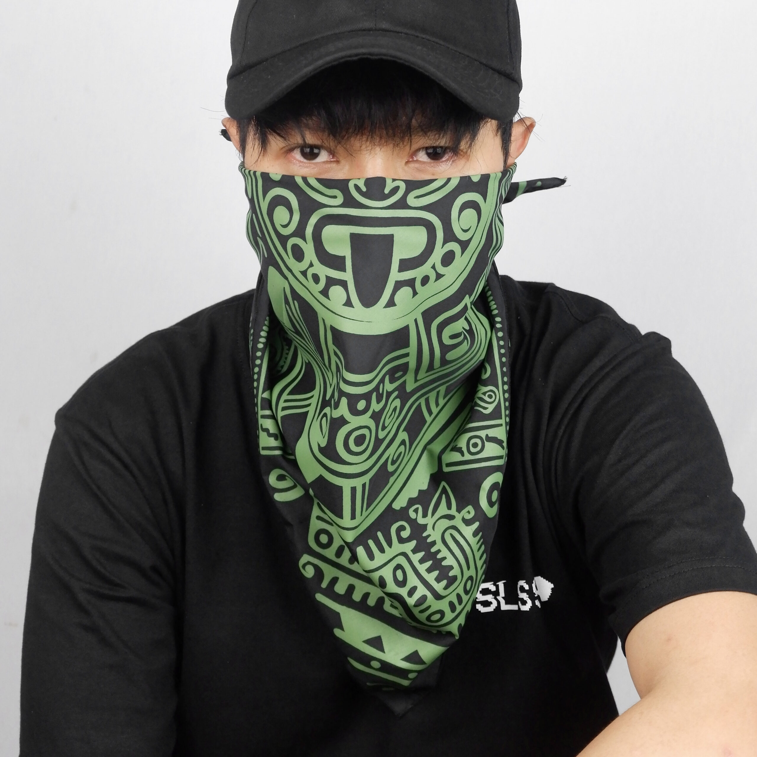 VSLSS bandana/scarf using sogo material measuring 55 cm x 55 cm and screen printing on the front