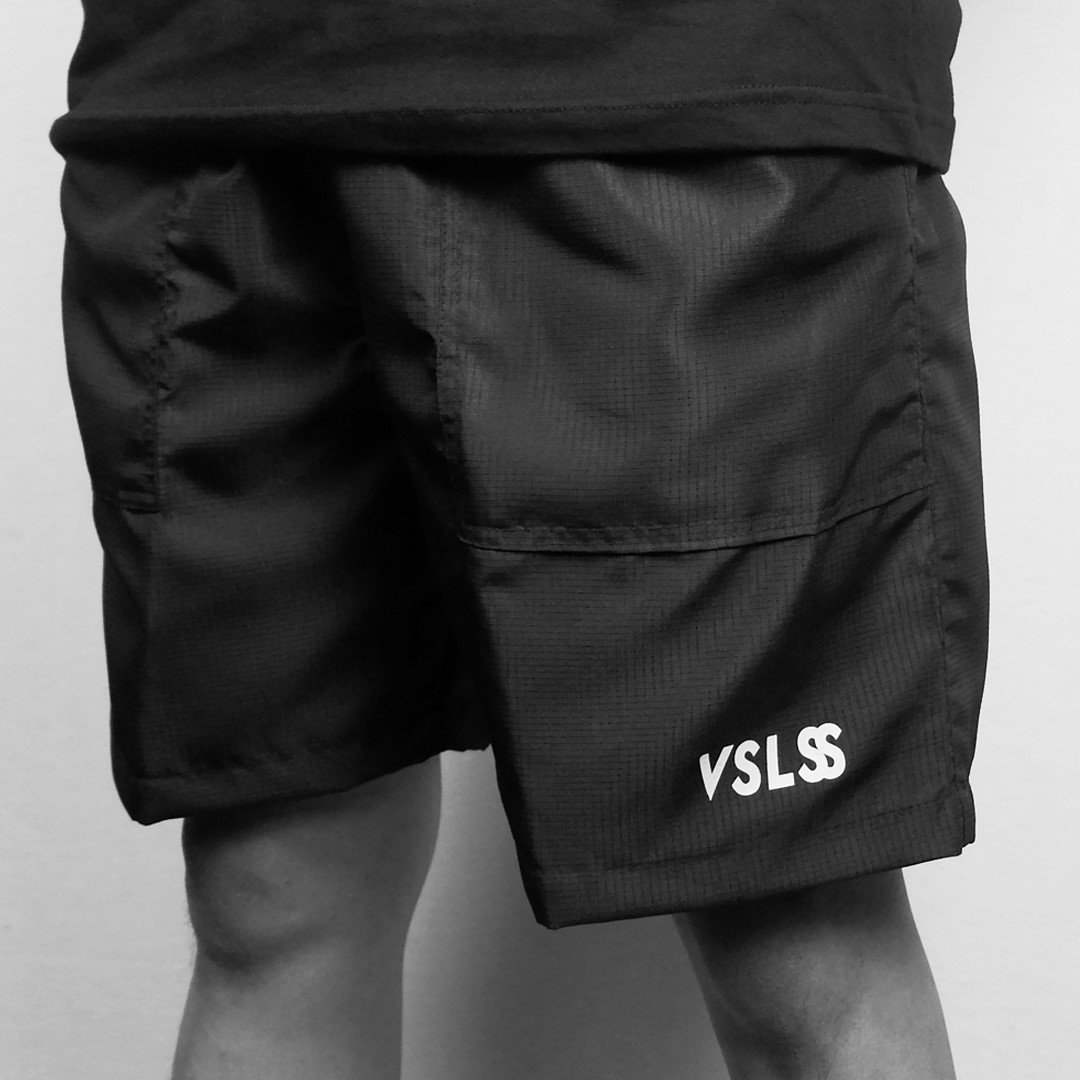 Celana pendek VSLSS menggunakan bahan polyester dan sablon di bagian depan