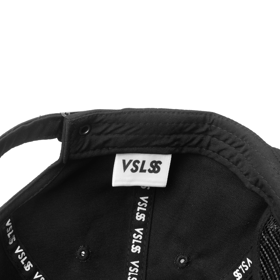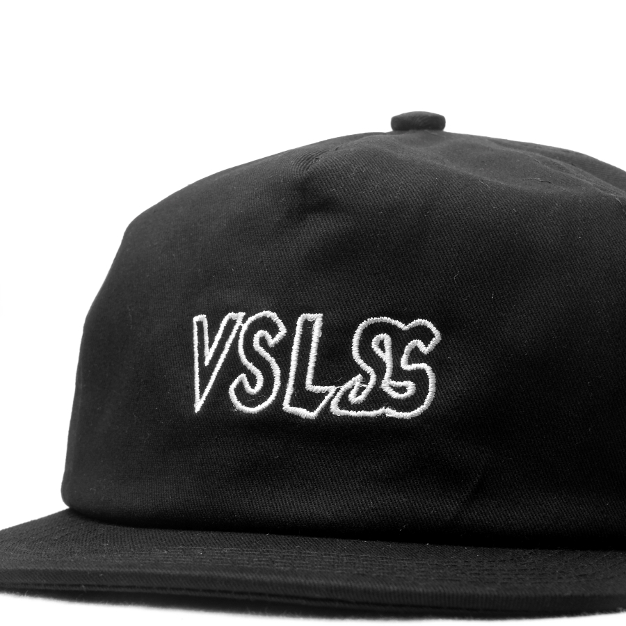 VSLSS black unstructured strap back cap with embroidery on front