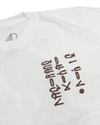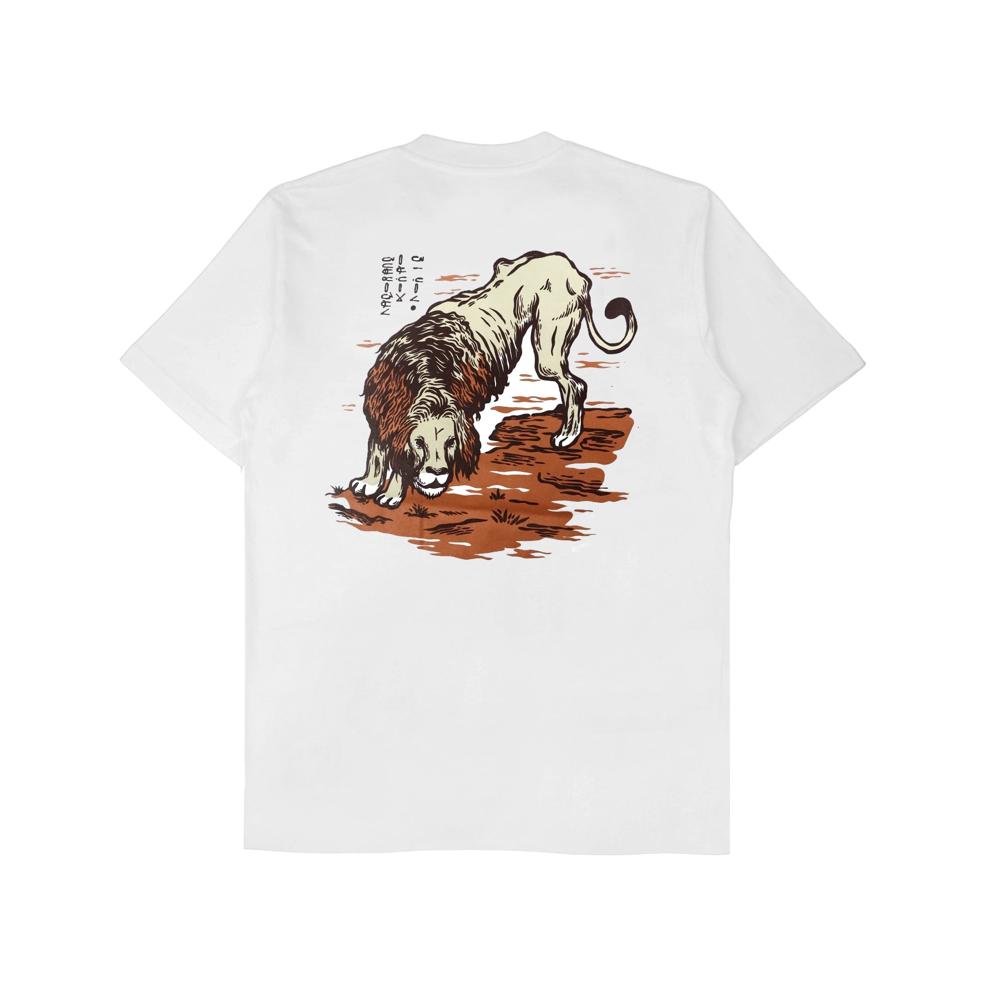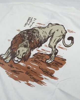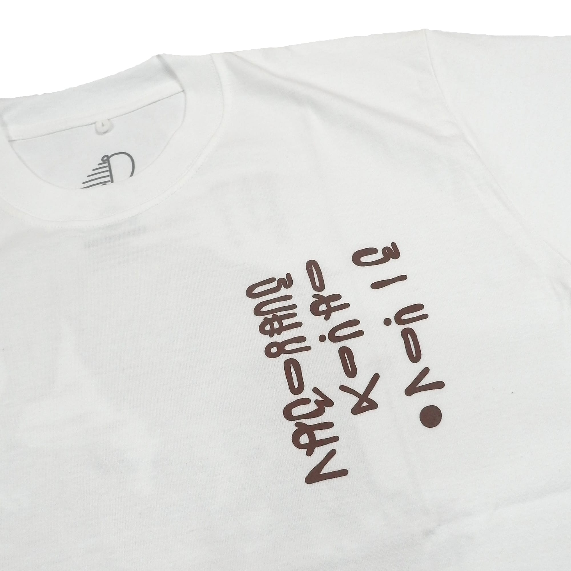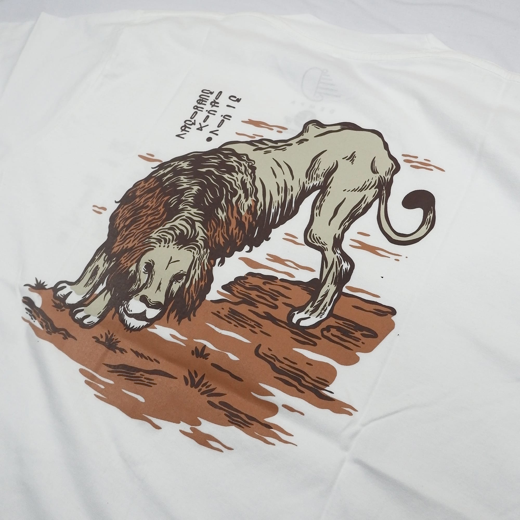 Short sleeve T-shirt with ink screenprint at front and back.