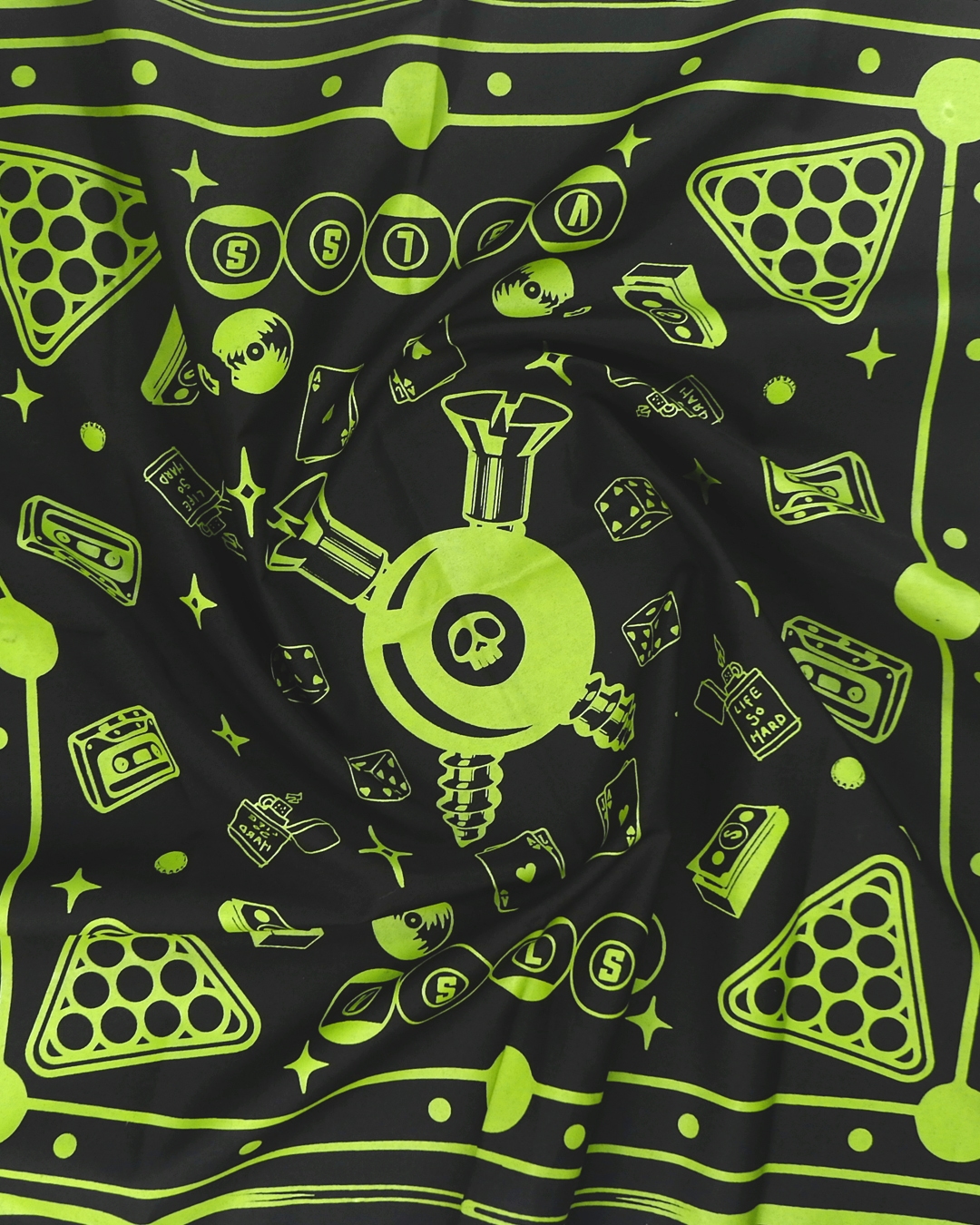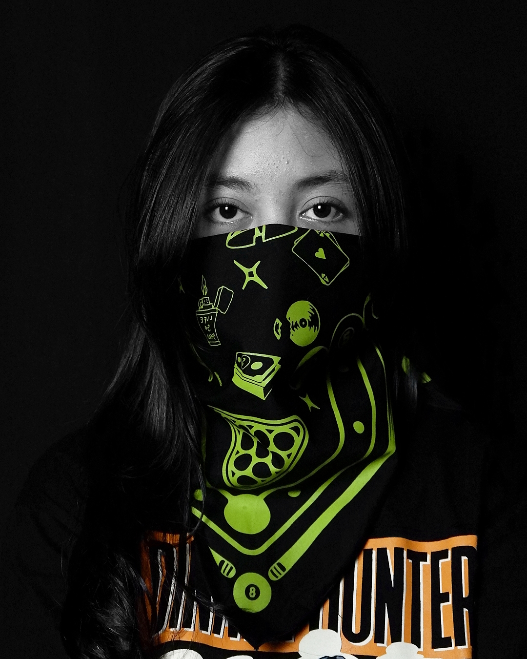 VSLSS bandana/scarf using sogo material measuring 55 cm x 55 cm and screen printing on the front