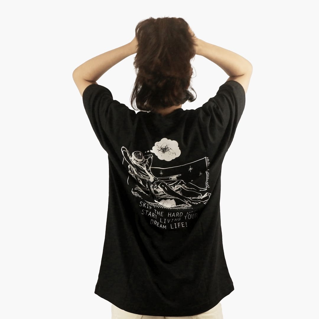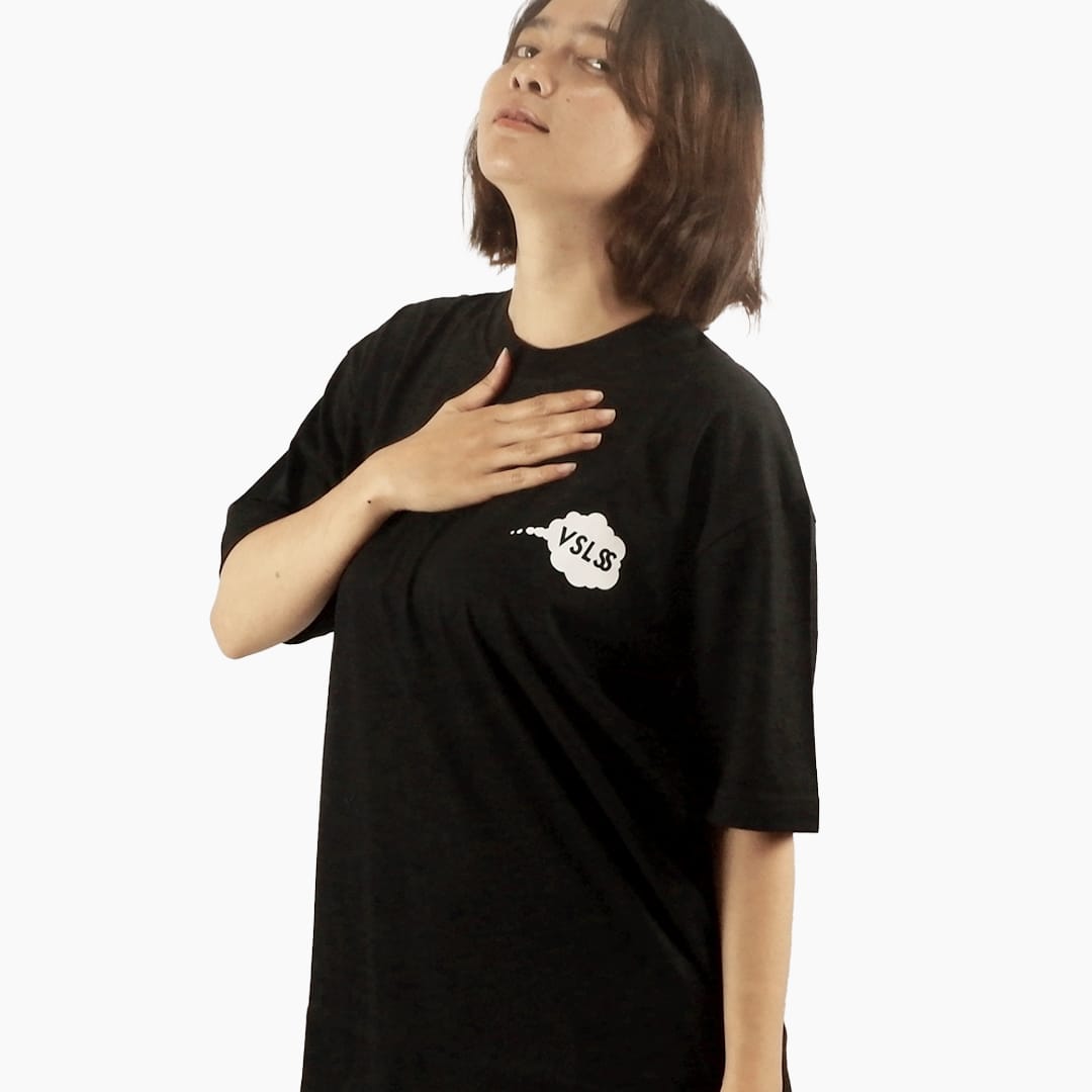 Kaos Lengan Pendek VSLSS menggunakan bahan katun kombed 24s dan sablon plastisol pada bagian depan dan belakang