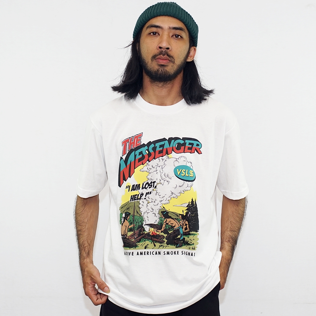 Kaos Lengan Pendek VSLSS menggunakan bahan katun kombed 24s dan sablon plastisol pada bagian depan