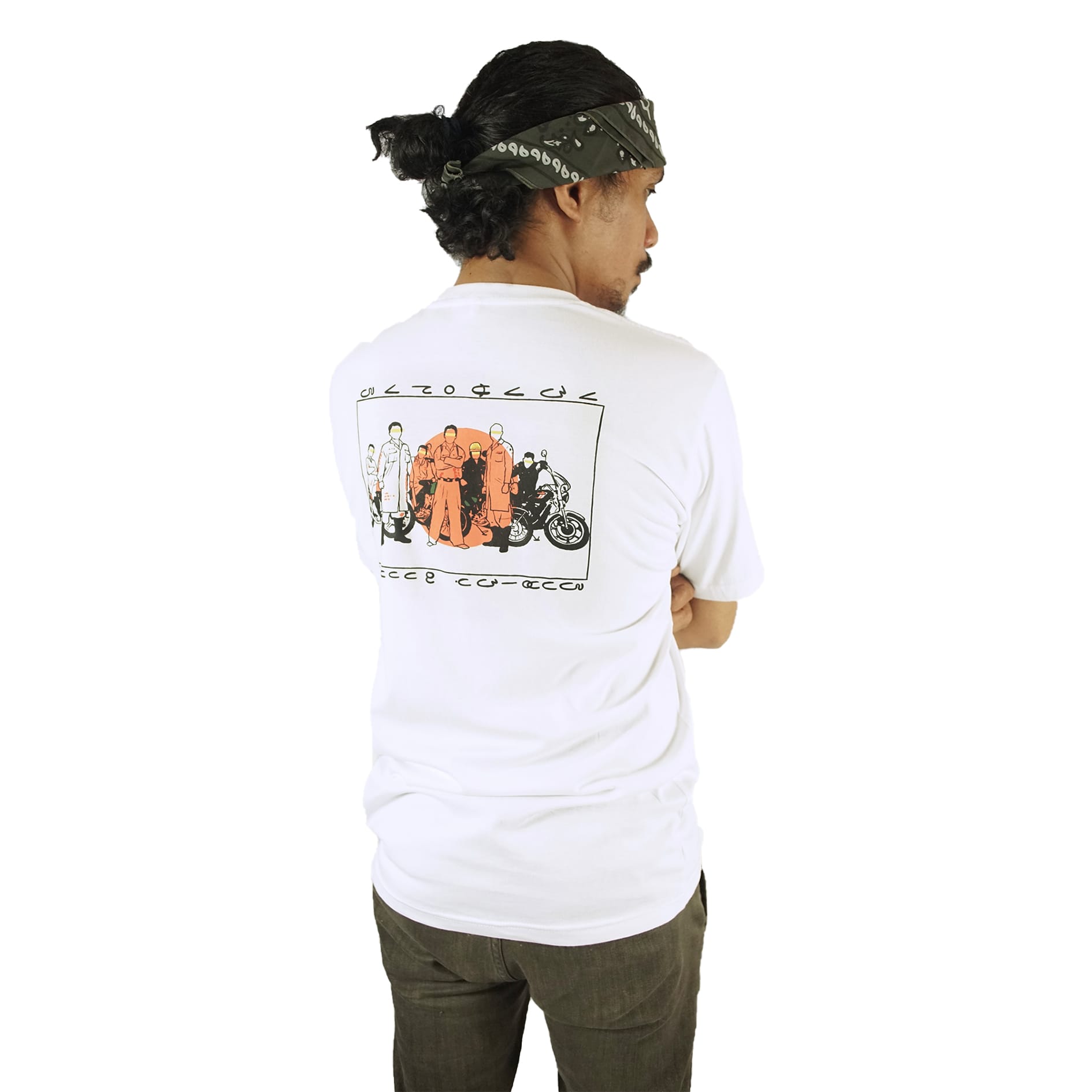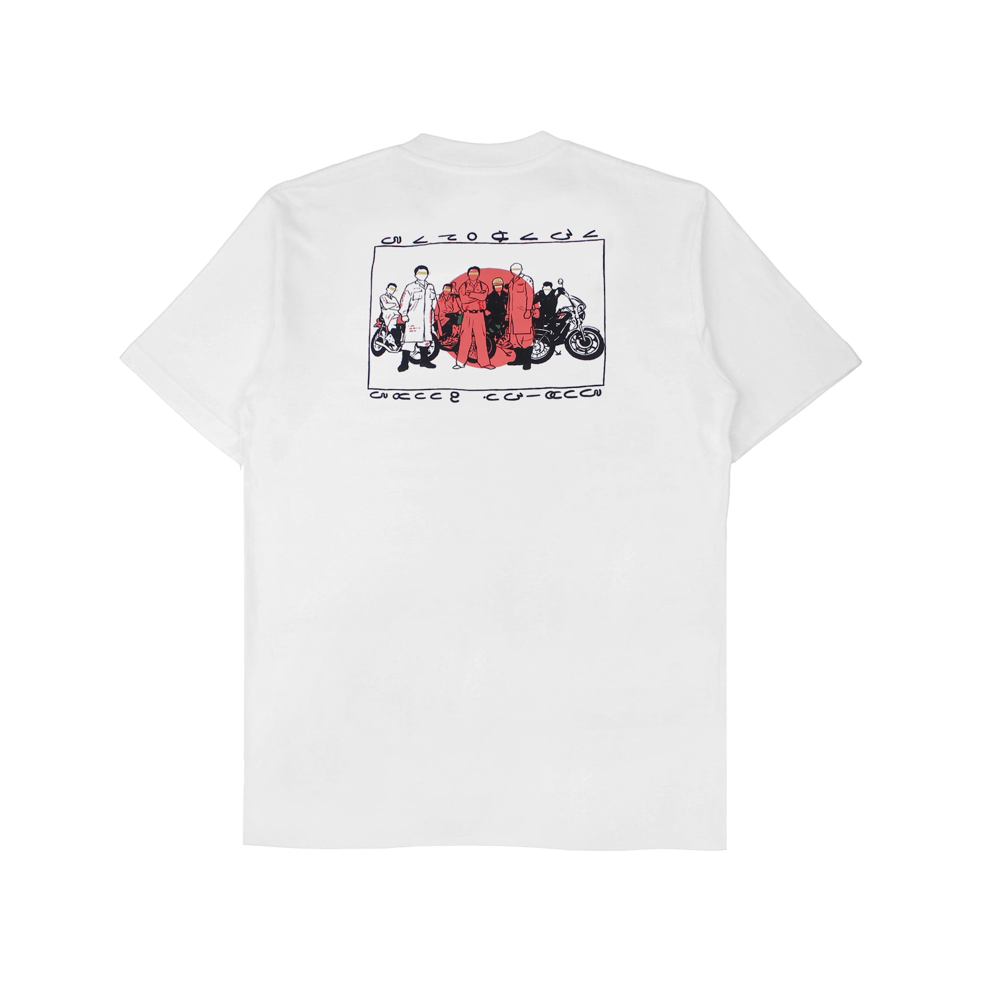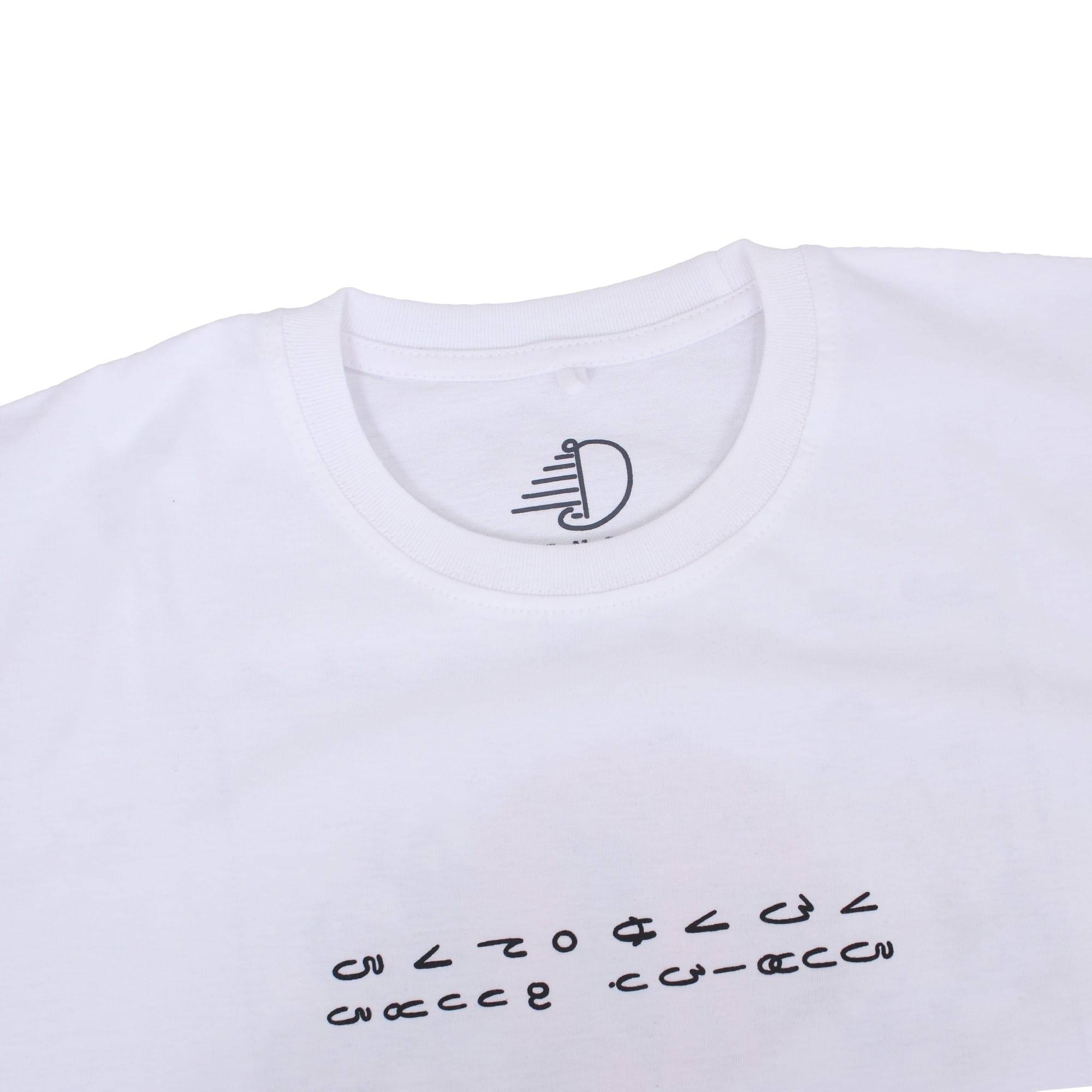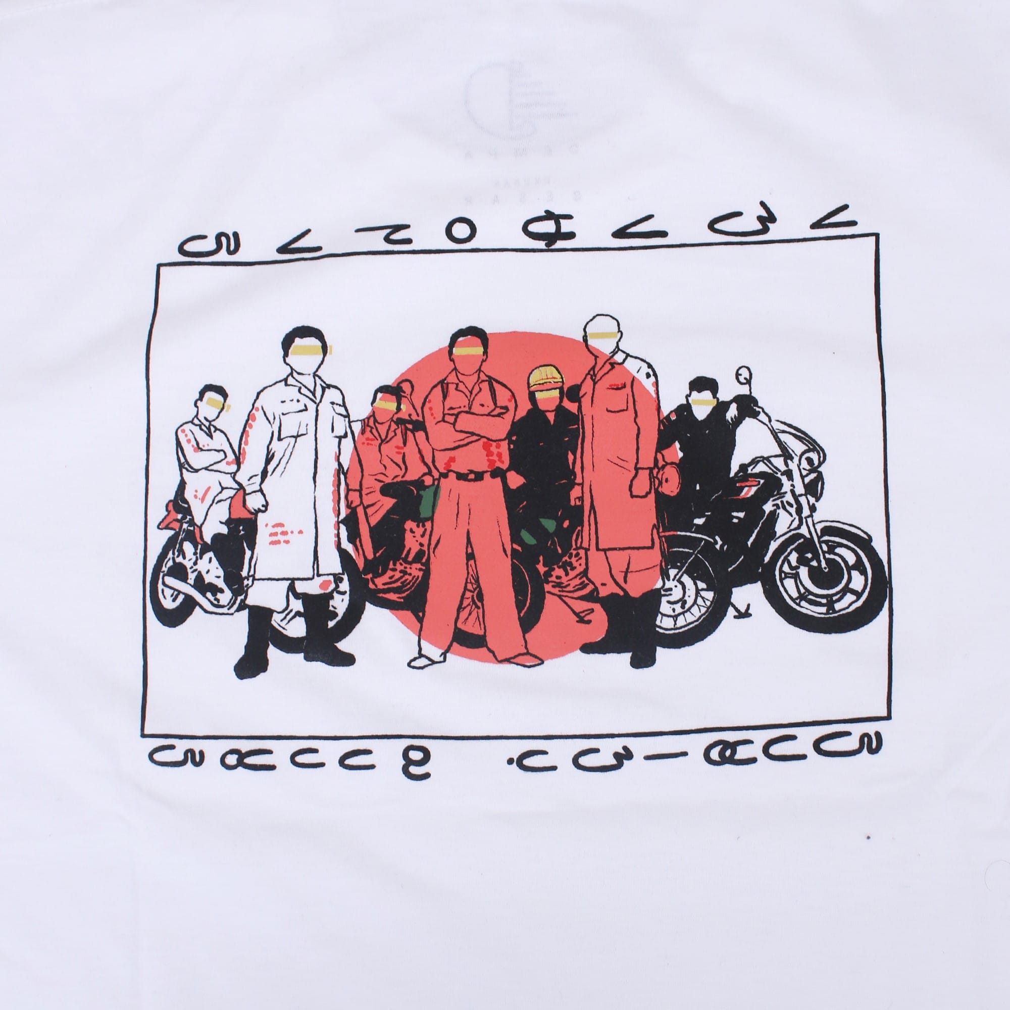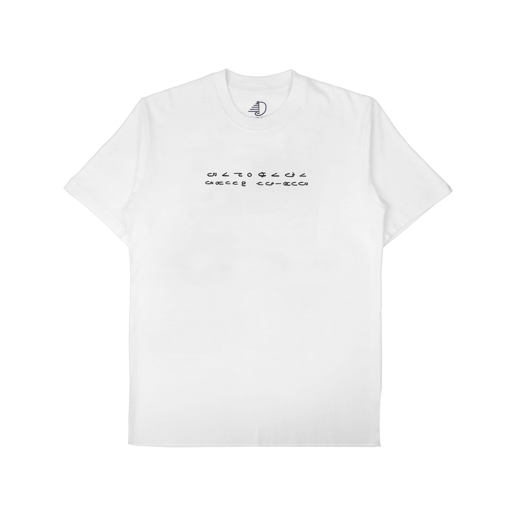 Short sleeve T-shirt with ink screenprint at front and back.