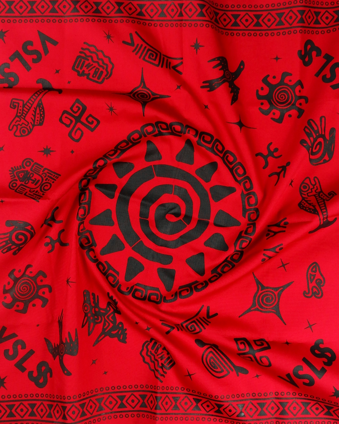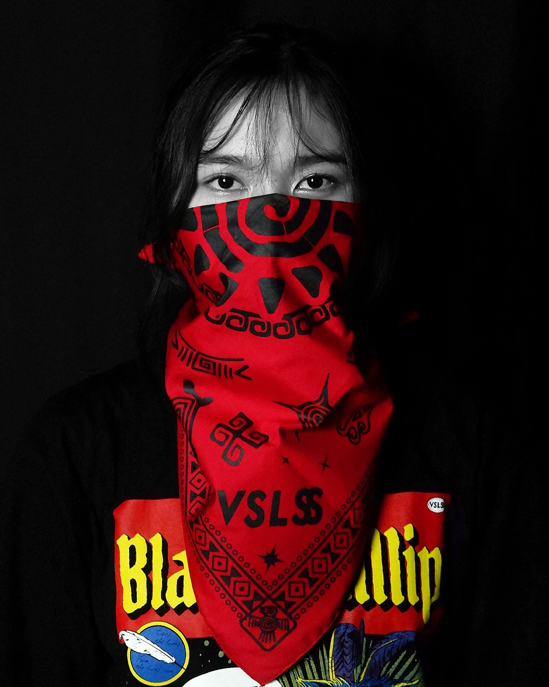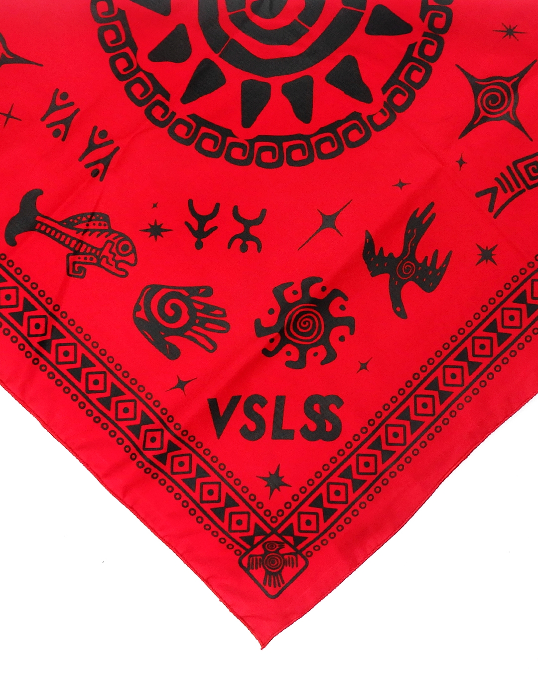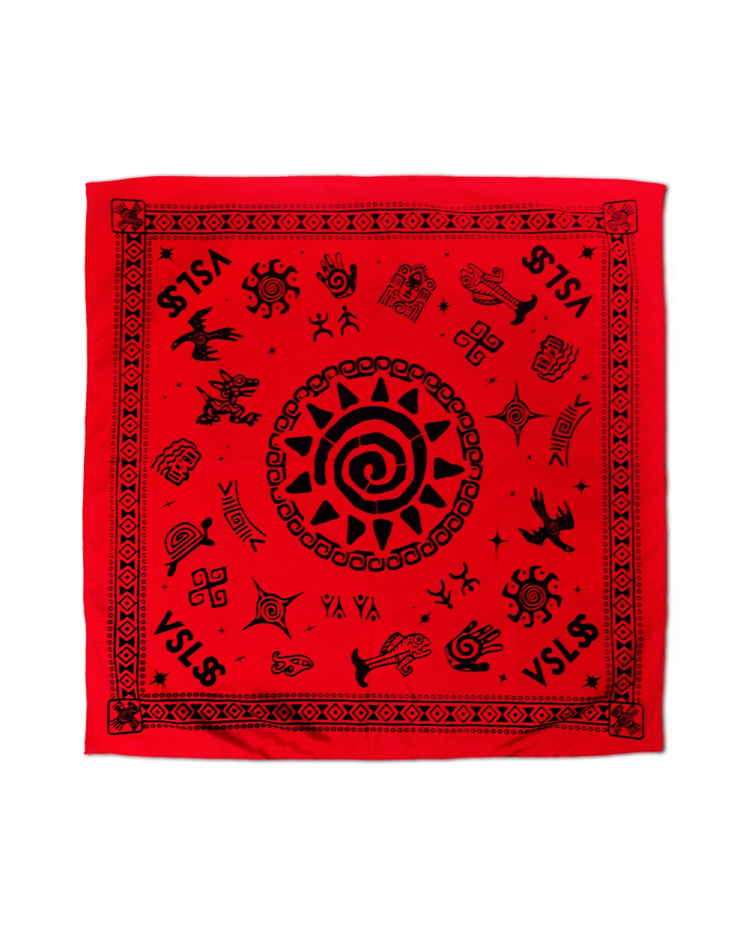 VSLSS bandana/scarf using sogo material measuring 55 cm x 55 cm and screen printing on the front