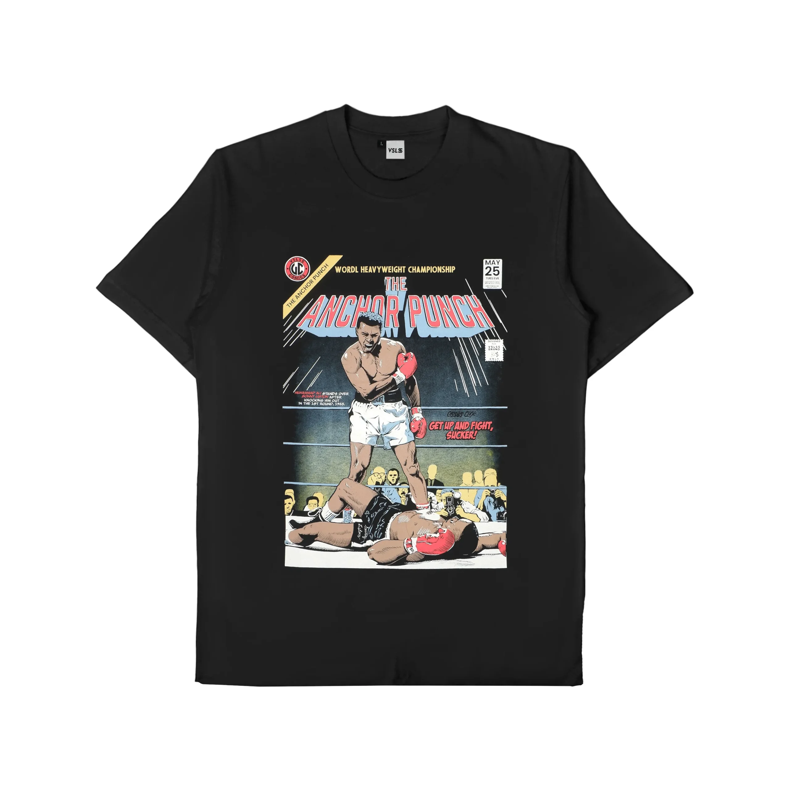 Kaos Lengan Pendek VSLSS menggunakan bahan katun kombed 20s dan sablon plastisol pada bagian depan