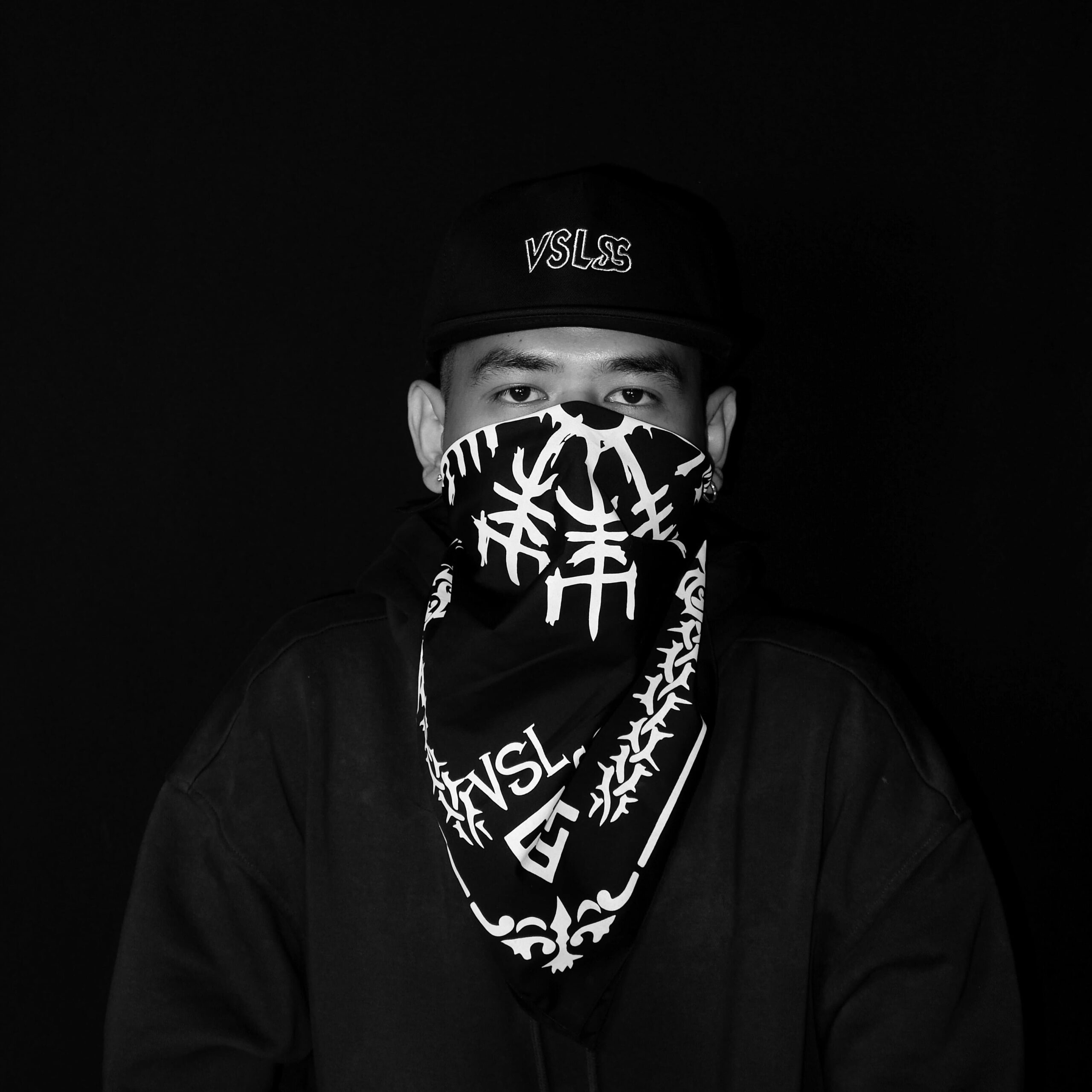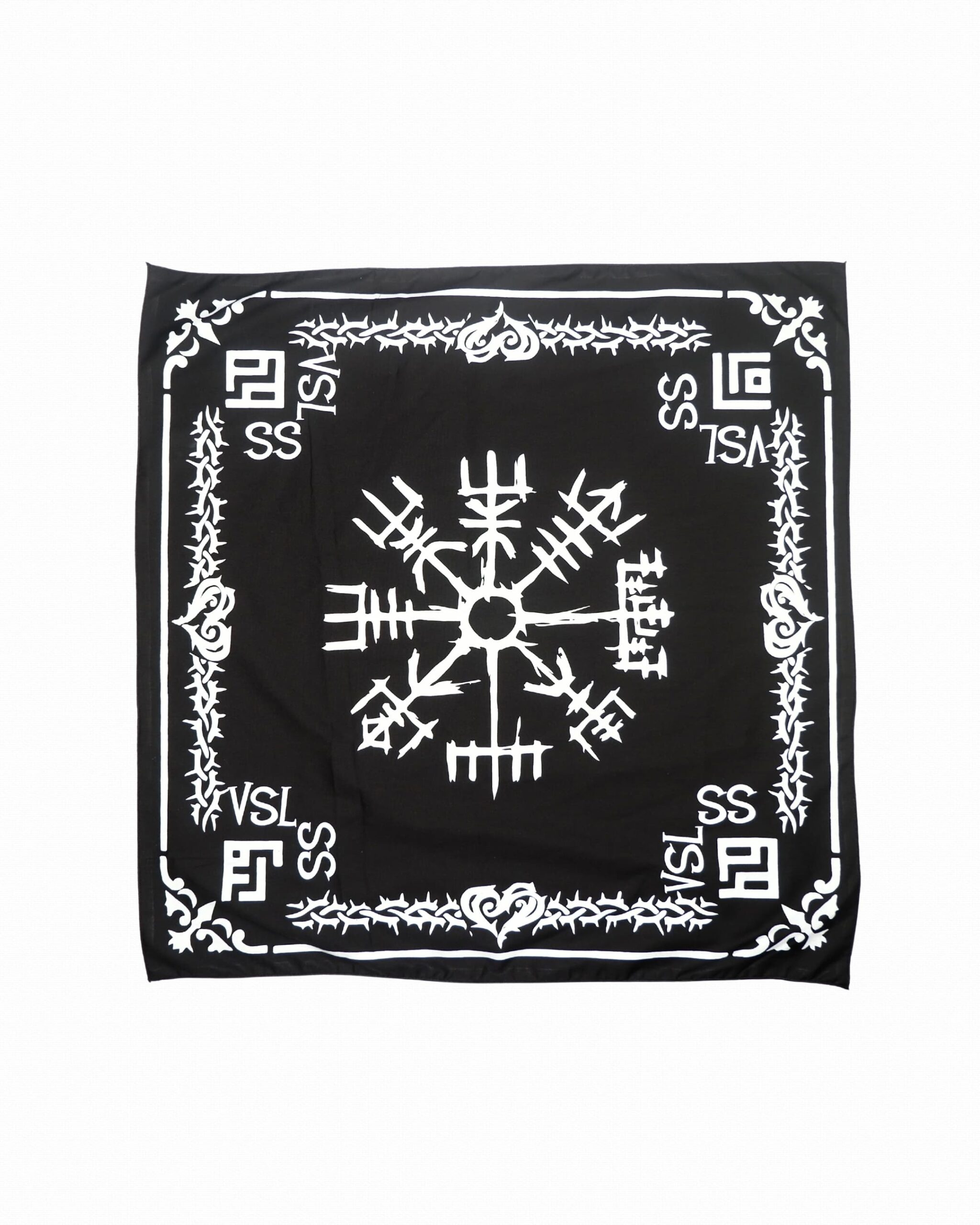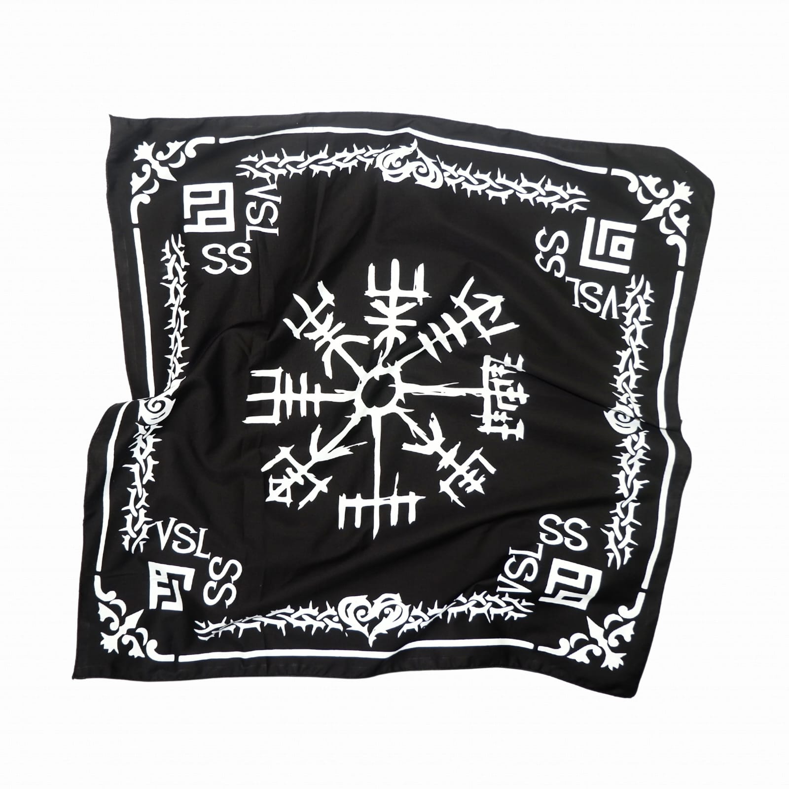 VSLSS bandana/scarf using sogo material measuring 55 cm x 55 cm and screen printing on the front