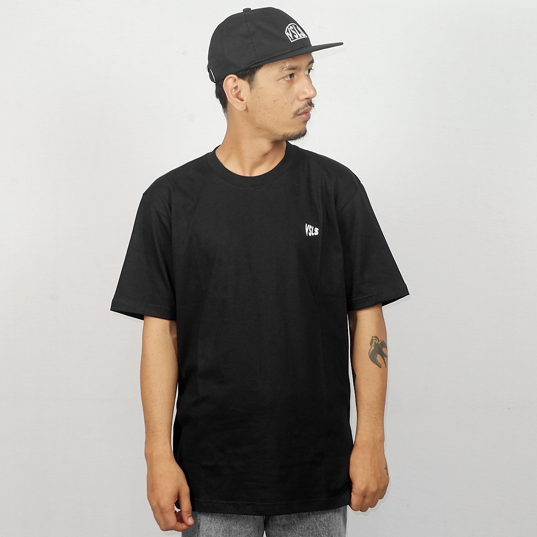 Kaos Lengan Pendek VSLSS menggunakan bahan katun kombed 24s dan sablon plastisol pada bagian depan